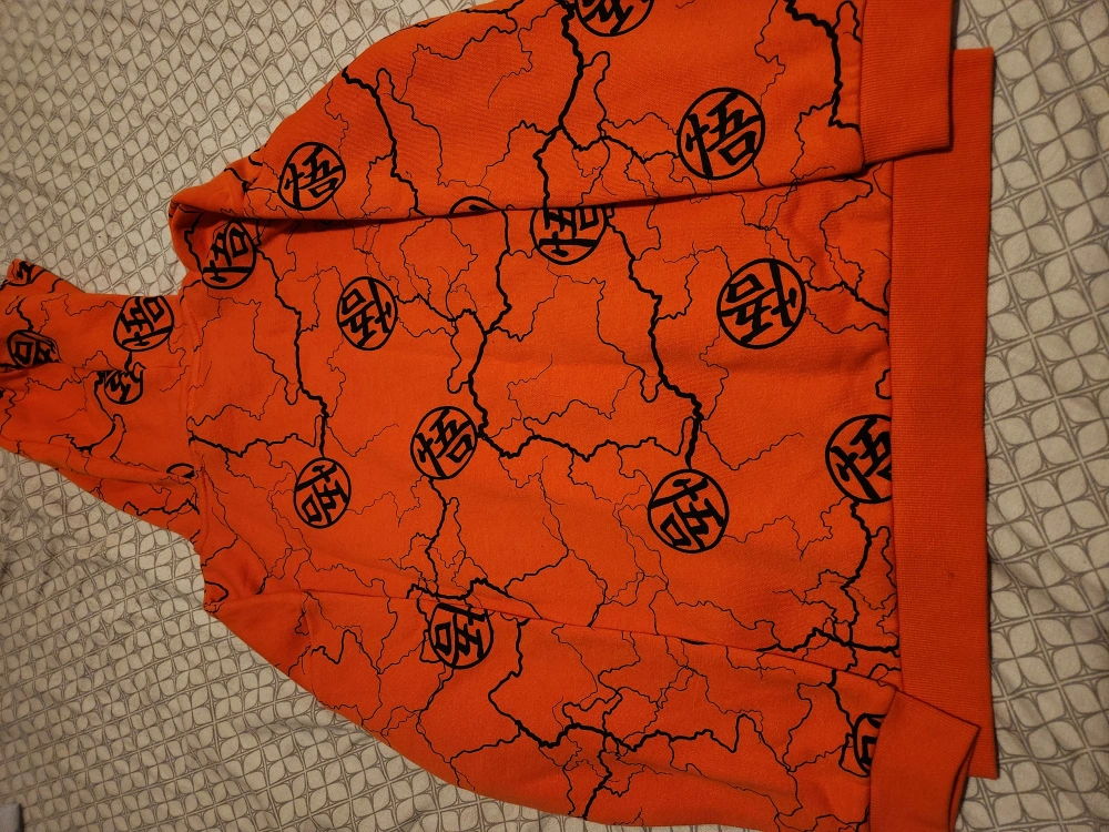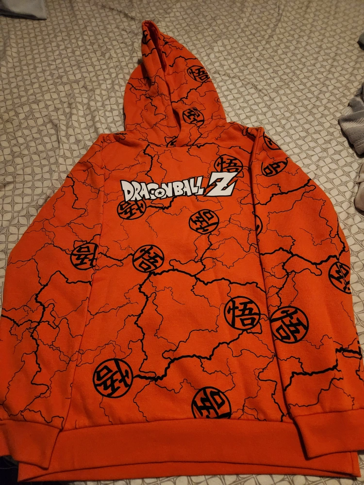Selling a Dragon Ball Z hoodie in orange! New and Unworn. The size is for ages 11-12 years, or 152cm. It has a cool all-over print featuring Dragon Ball Z designs Smoke free and Pet Friendly Home