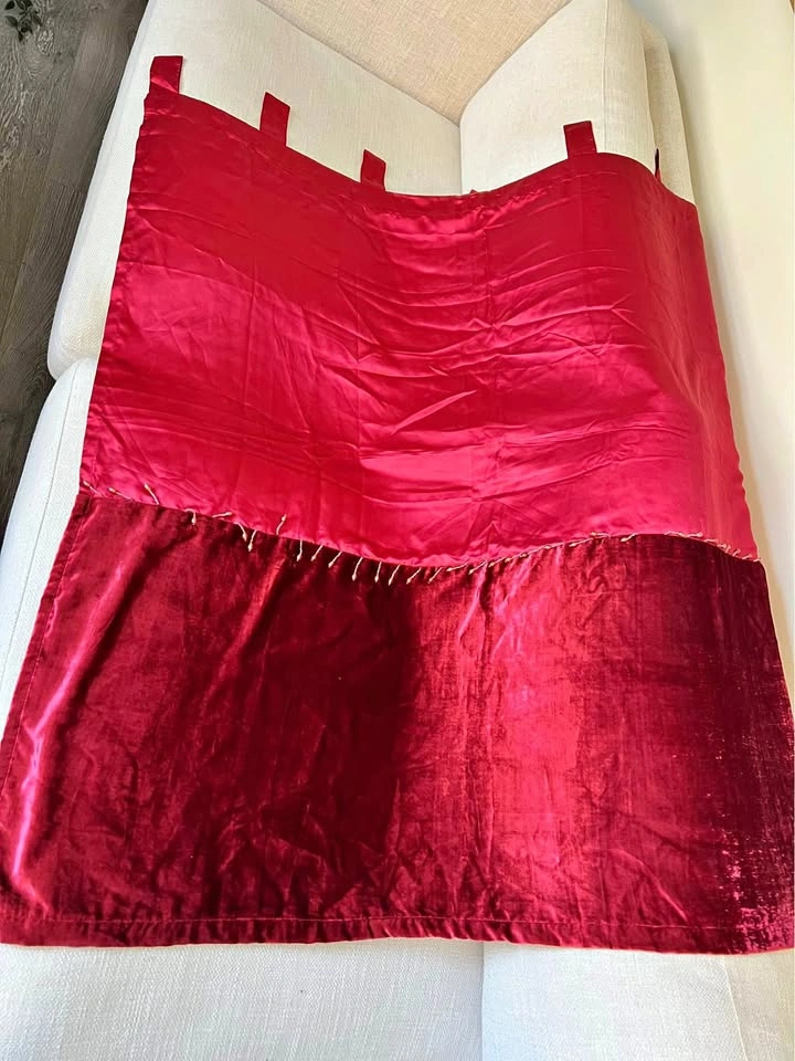 2 panel drapes, top fabric Satin, lower fabric velvet with beads. Size: width: 115cm Length: 135cm Drape is folded in picture
