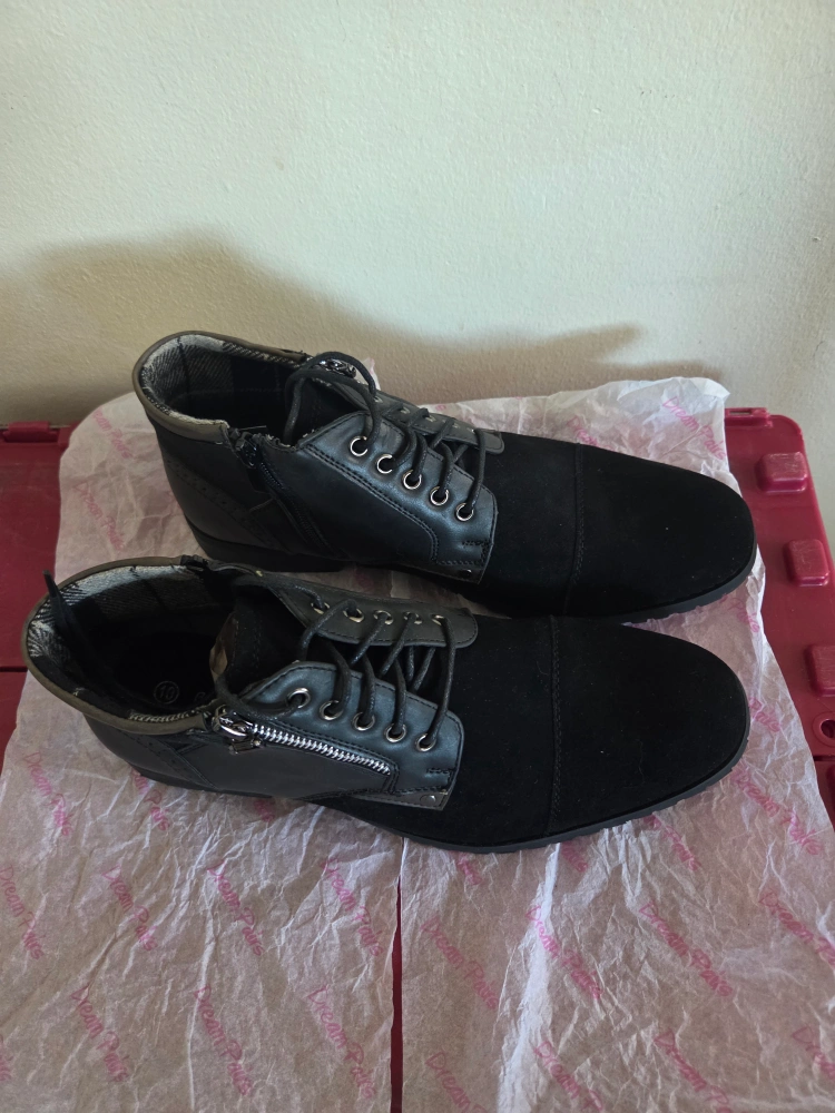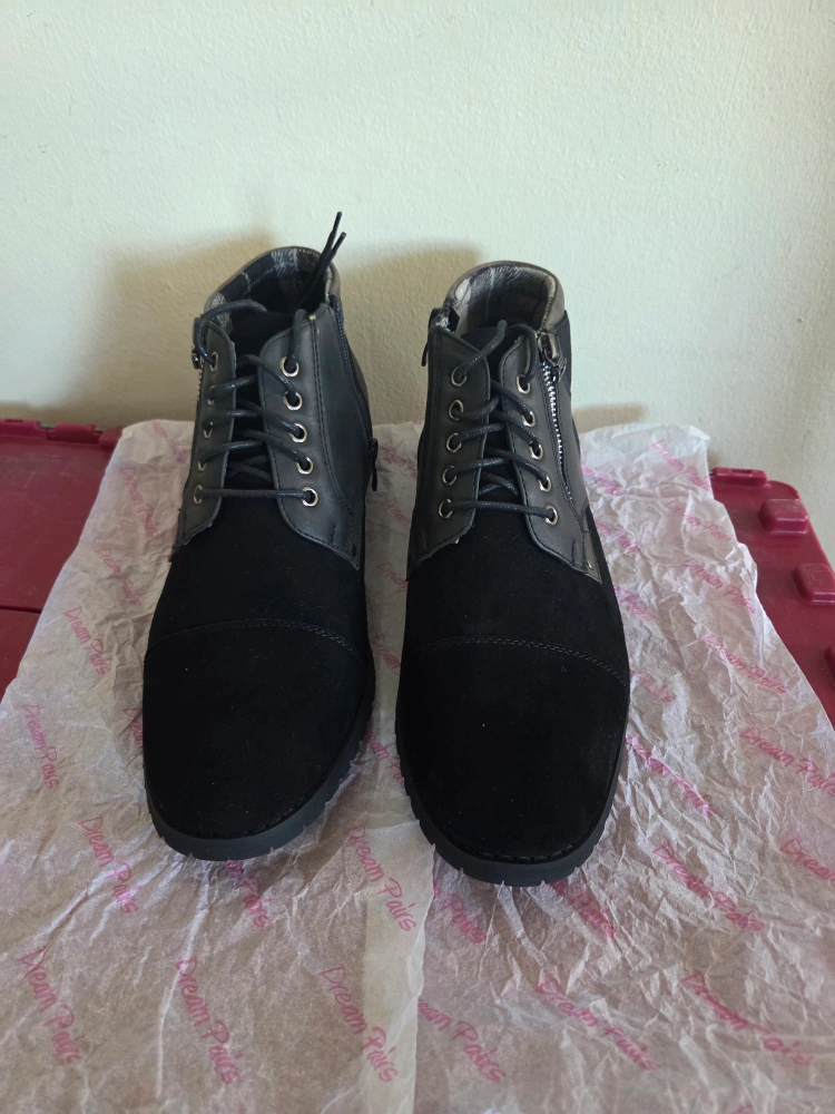 Selling a pair of black ankle boots from Dream Pairs in size 10. They feature a lace-up design with a side zipper for easy wear. The boots have a stylish look, perfect for adding a touch of flair to your outfit!