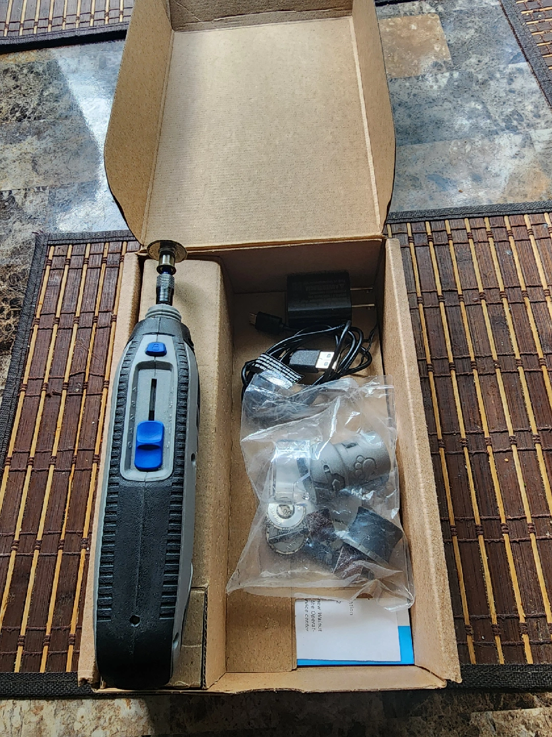 I'm selling a Dremel PawControl 7760-PGK cordless pet nail grooming kit. It comes with everything you see in the pictures, including the box and accessories. This tool is perfect for keeping your pet's nails trimmed and healthy in a safe and comfortable way