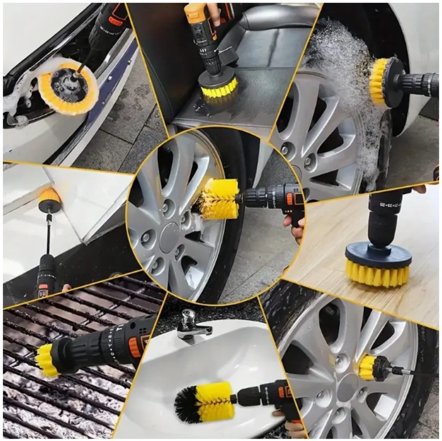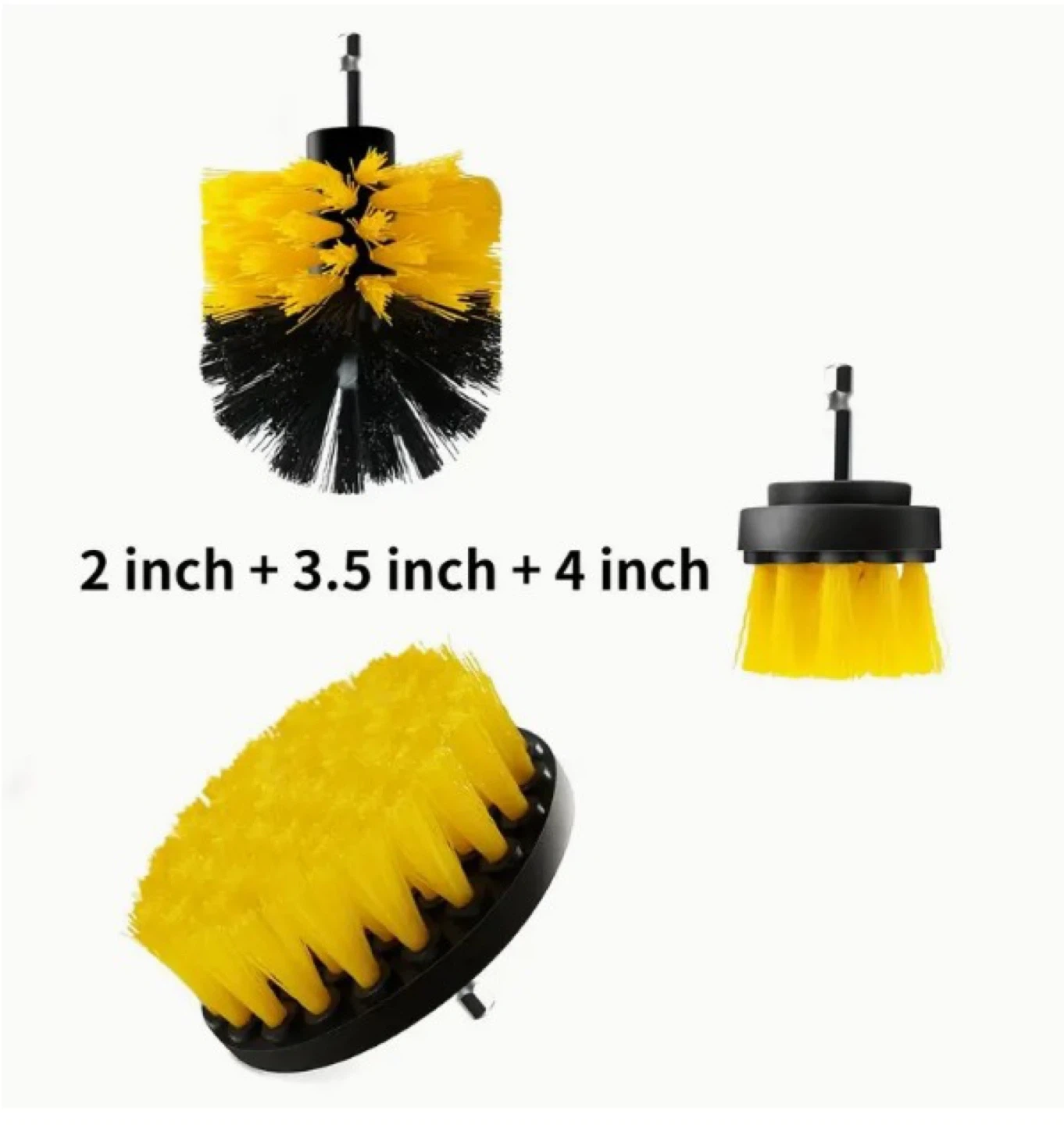 Powerful Drill Brush Attachment Set for Deep Cleaning - Concrete, Tile, and Car Interior Cleaning Selling a set of drill brush attachments! This set includes three different sizes: 2 inch, 3.5 inch, and 4 inch. Great for cleaning cars, bathrooms, kitchens and more
