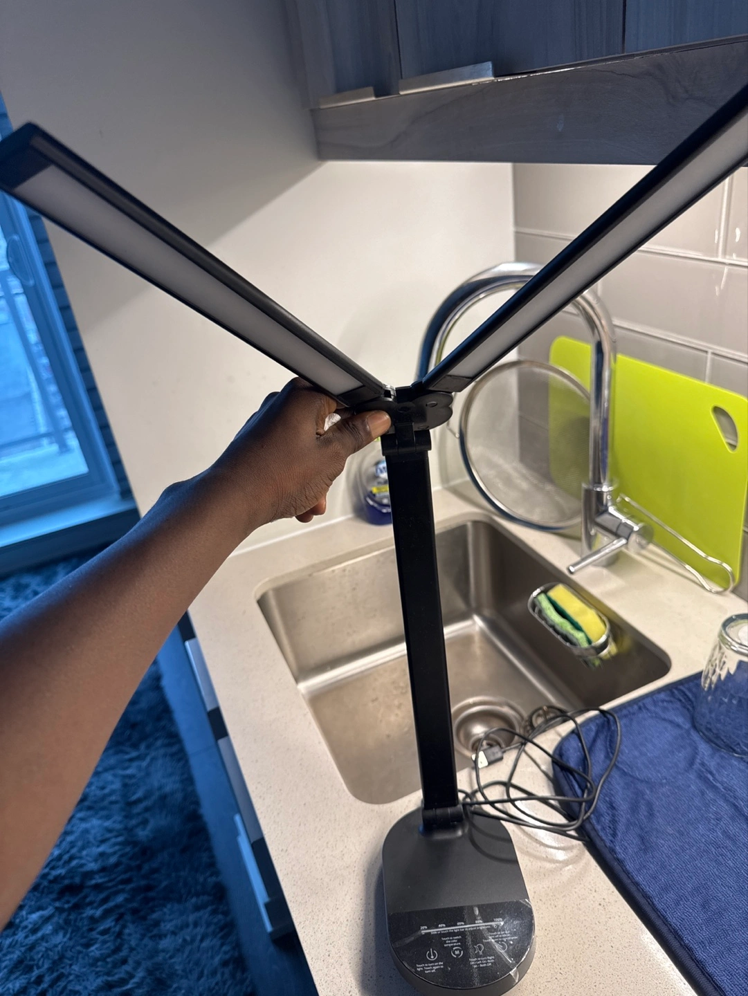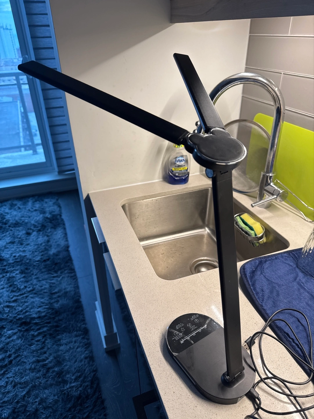 Sleek black design. Flexible gooseneck. USB powered. Great for studying or working. Compact and portable. I am packing out so I am trying to get rid of a few things in the house.