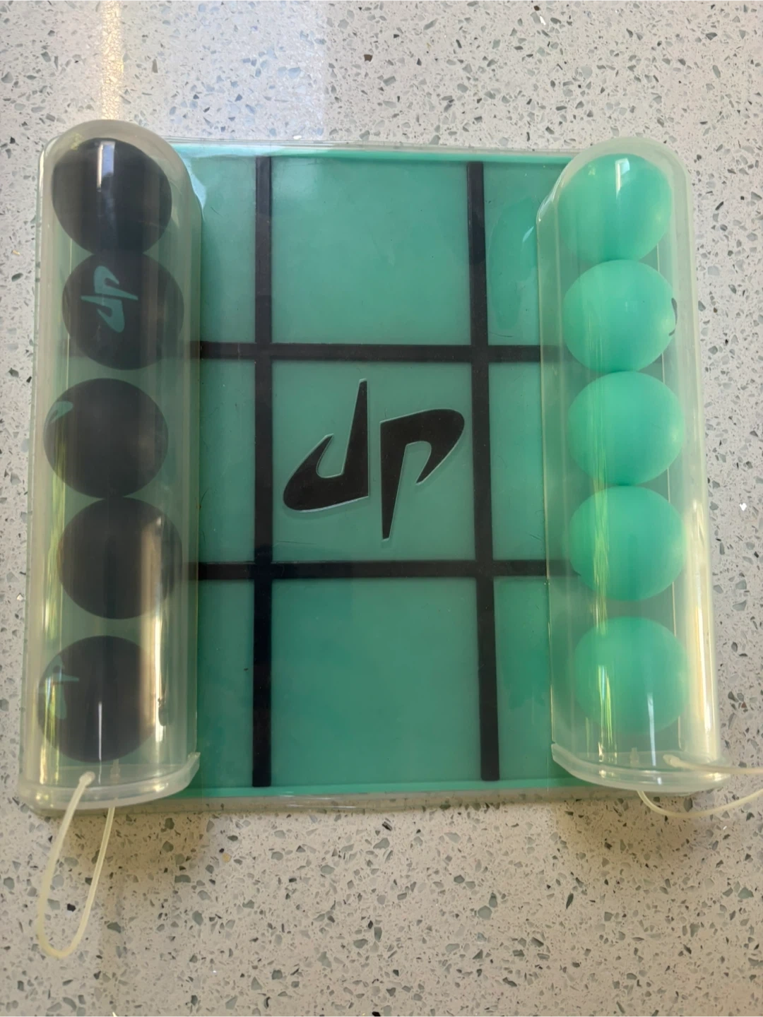 Selling a Dude Perfect Tic Tac Toe game! It features a fun and unique design with the Dude Perfect logo. The game includes the board and the balls needed to play. Perfect for some friendly competition!