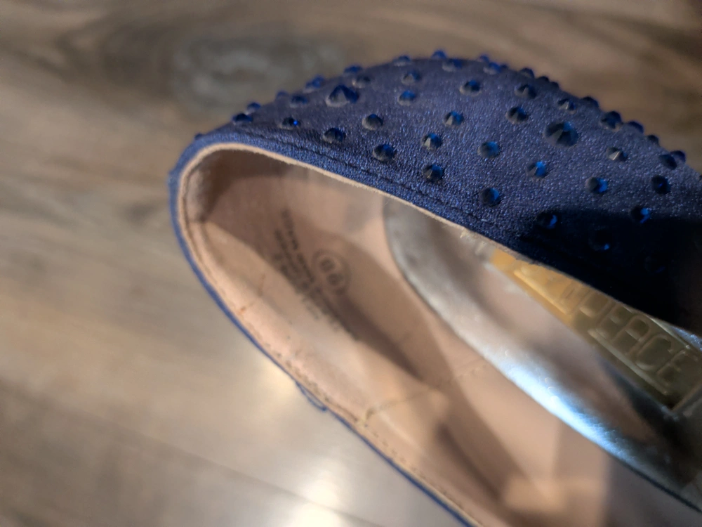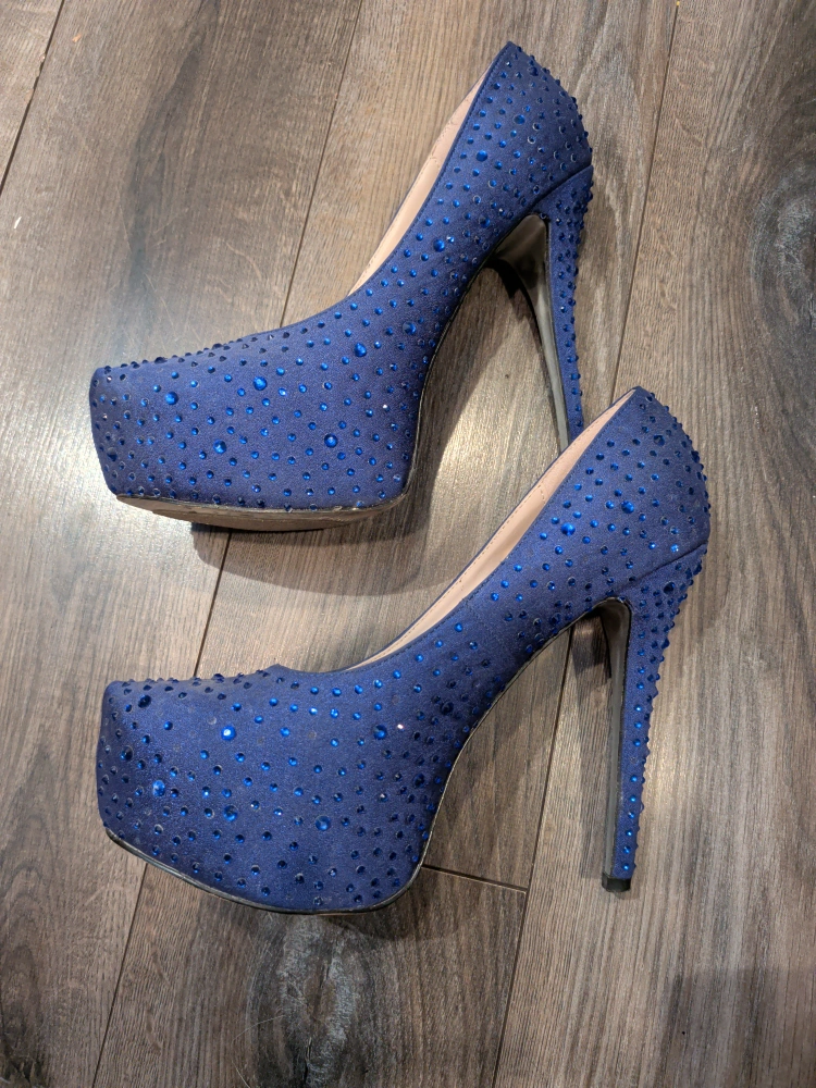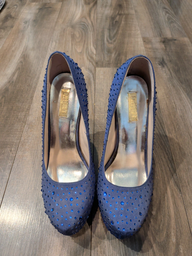 These are a pair of Dufferen heels in a beautiful blue colour. They feature jewel embellishments and are a size 9. Perfect for a night out!