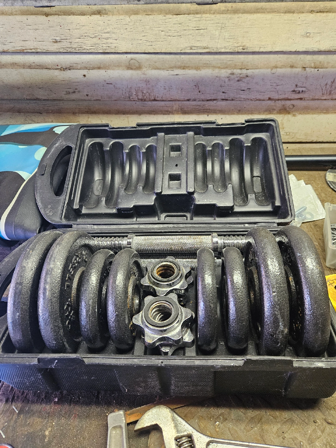 Selling a dumbbell set that comes with its own carrying case! It's a great set for home workouts and keeping fit. All the weights and connectors are included. 2 sets of 2.5lbs and 2 sets of 5lbs.