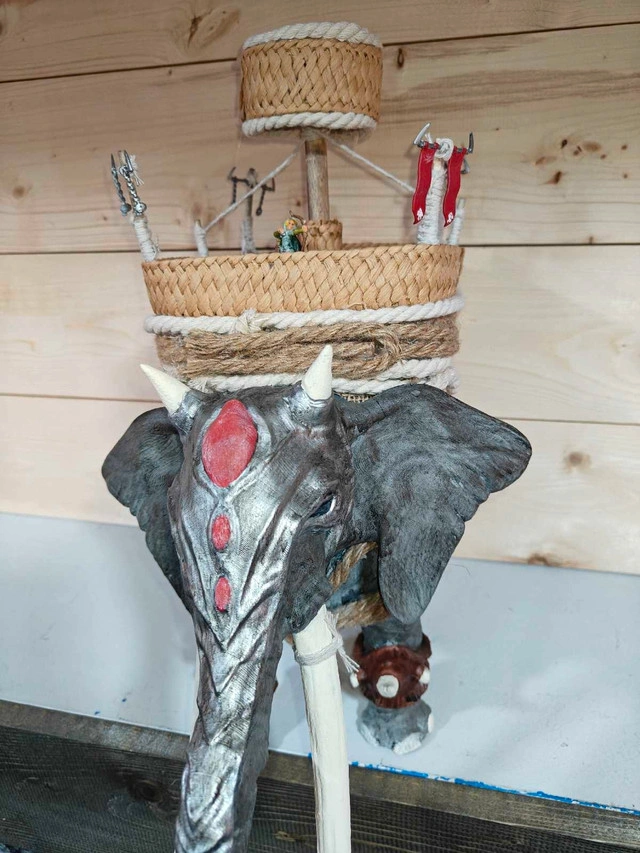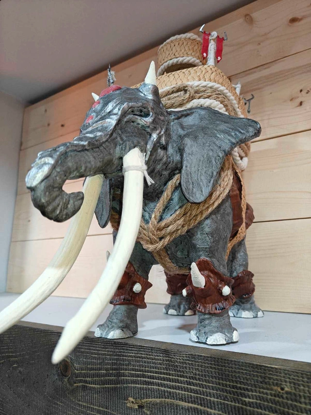 This is a custom-made Dungeons and Dragons RPG 'elephant' "miniature", perfect for adding a unique touch to your tabletop games. This impressive piece stands nearly 16 inches tall, and makes a great centerpiece for your tabletop game. Elf archer mini included. If the ad is up, it's still available, so don't miss out!