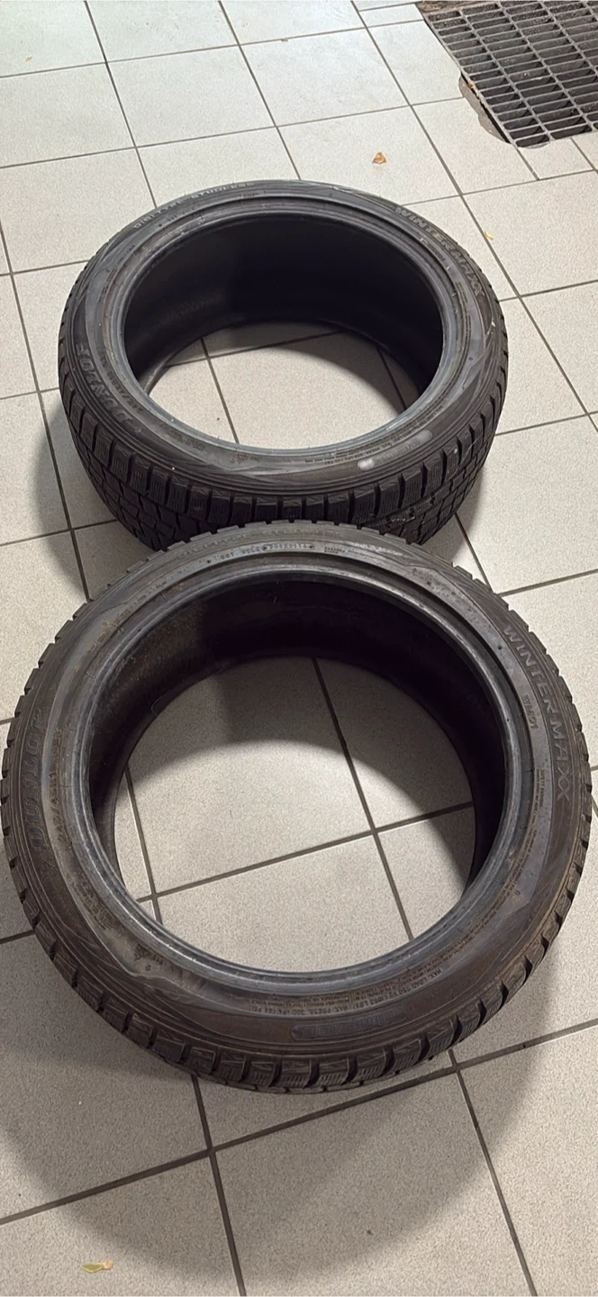 Selling a pair of Dunlop Winter Maxx WM01 winter tires. The size is 245/45R19. They're ready to help you tackle the winter roads! One tire has a plug No rims