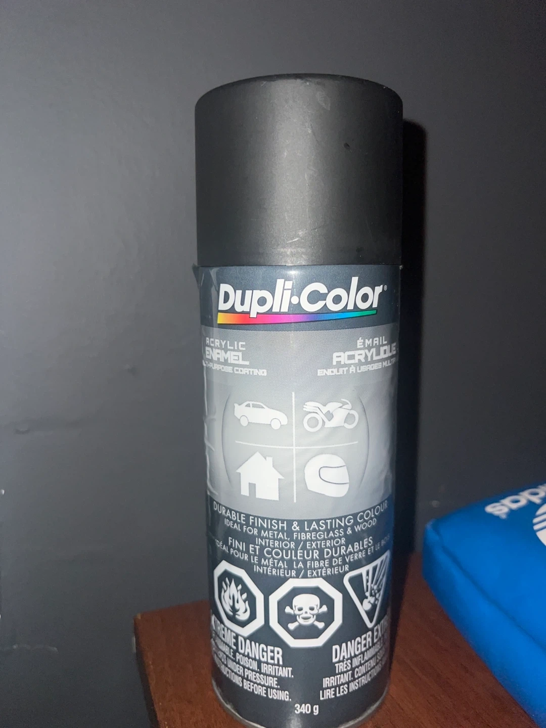 Selling a can of Dupli-Color acrylic enamel spray paint! It's ideal for metal, fibreglass, and wood, and can be used for both interior and exterior projects. The can contains 340g of paint. Used only once.