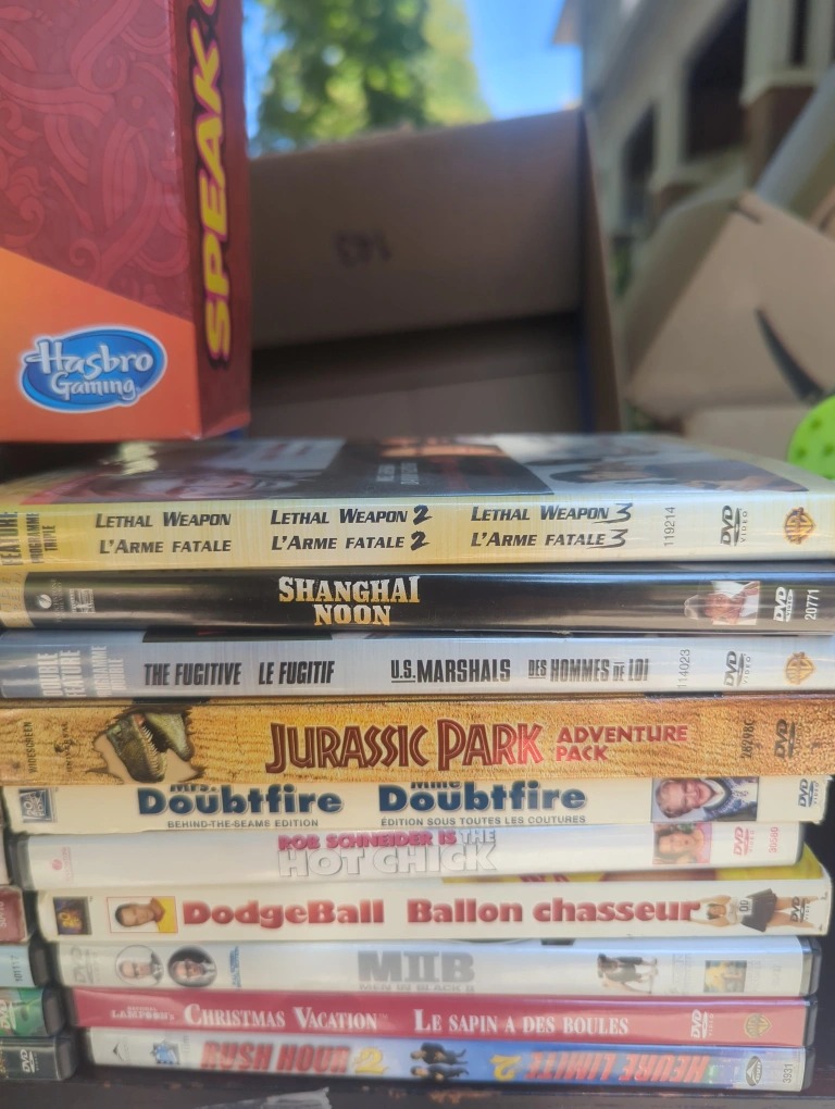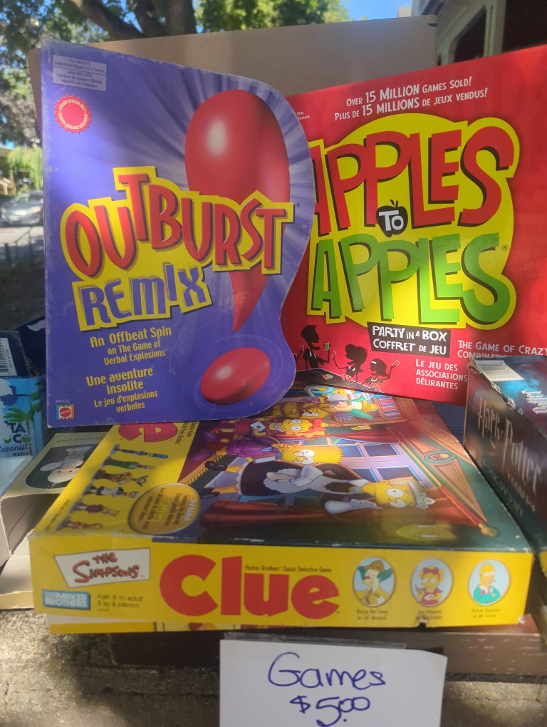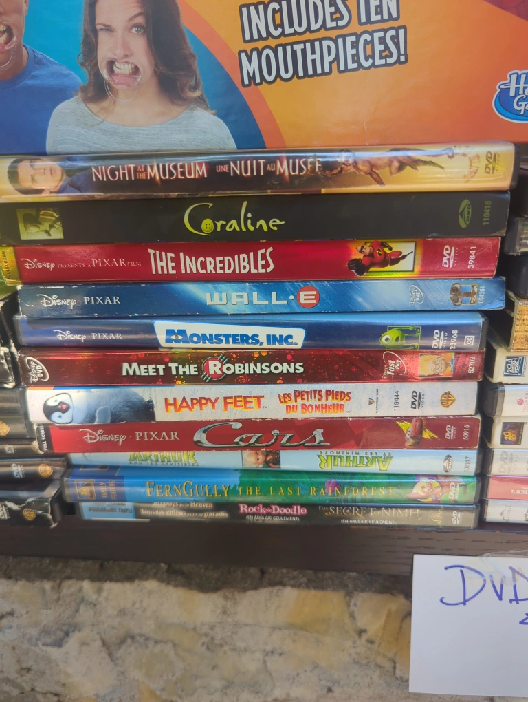 Selling a collection of DVDs and board games! DVDs include titles like Harry Potter, Coraline, The Incredibles, and more. Board games include Apples to Apples, Clue (The Simpsons edition), Speak Out, and Outburst Remix. All items are in good condition. Asking $5 each or bundle price. pickup only