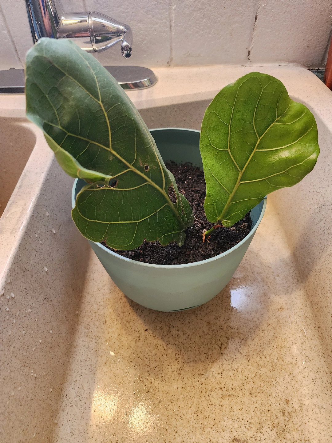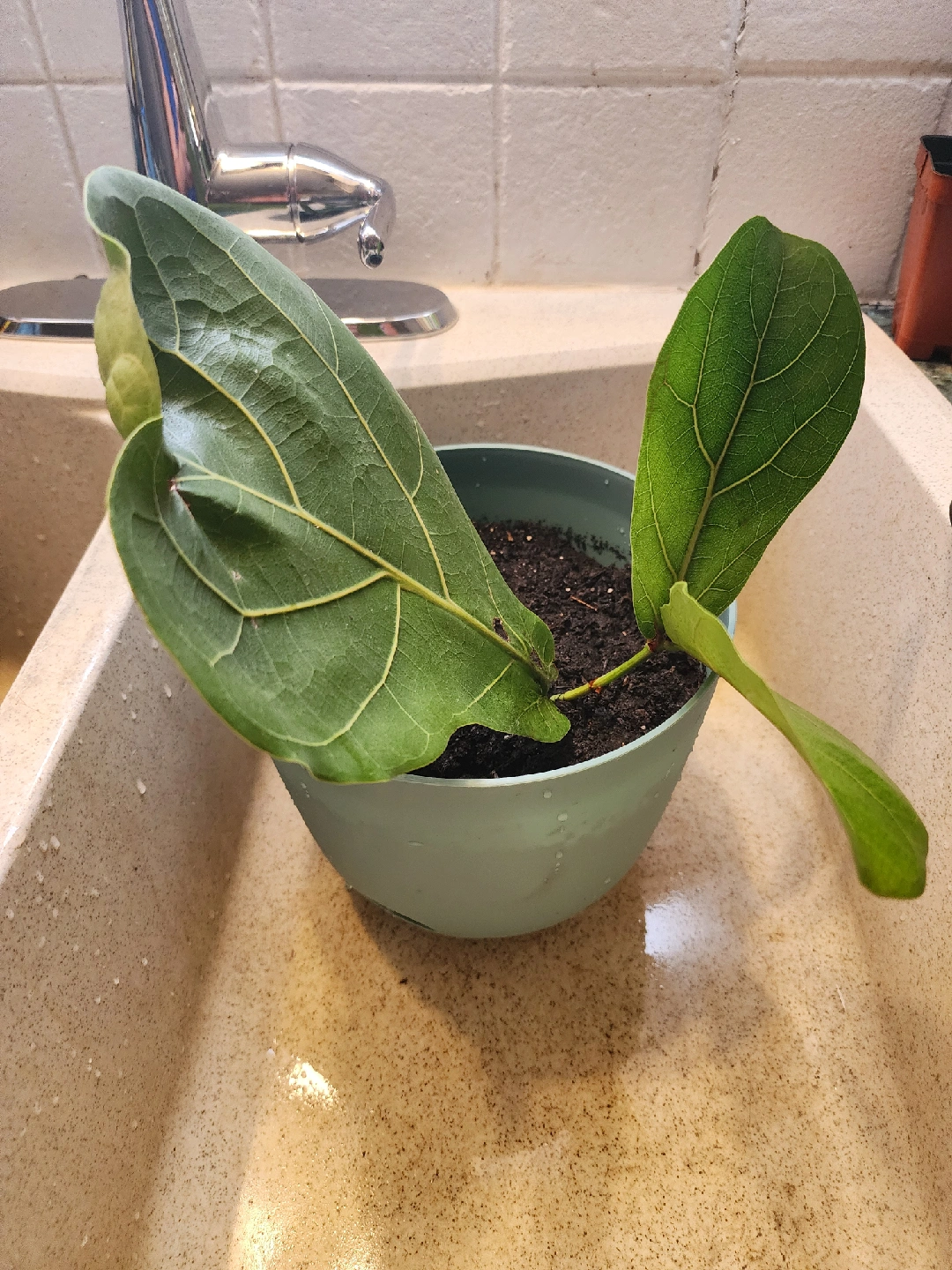 Dwarf Fiddle Leaf Fig (Ficus Lyrica) in 8" Light Green Pot with Reservoir. New growth.