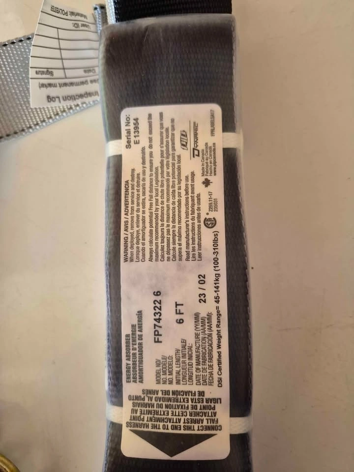 Vest Style Harness CSA Class A size 6 ft lanyard with energy absorber (DYNA-ONE) Convenient carry bag model