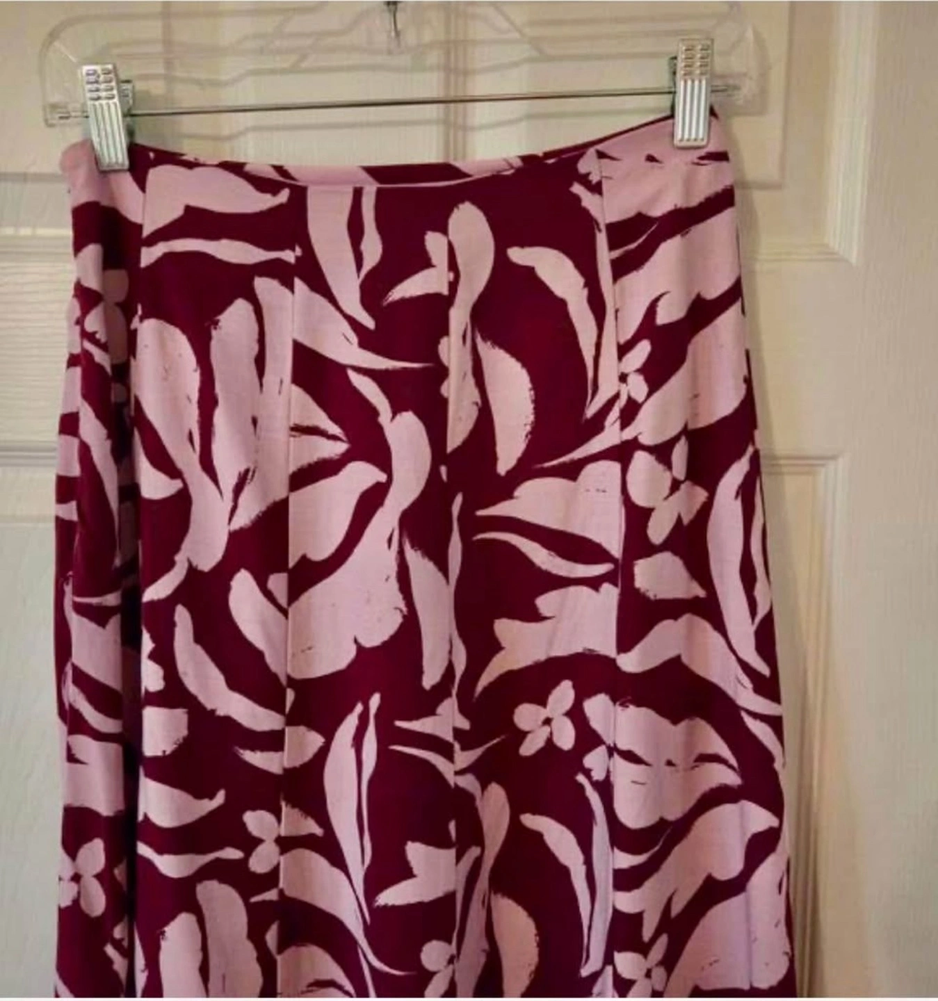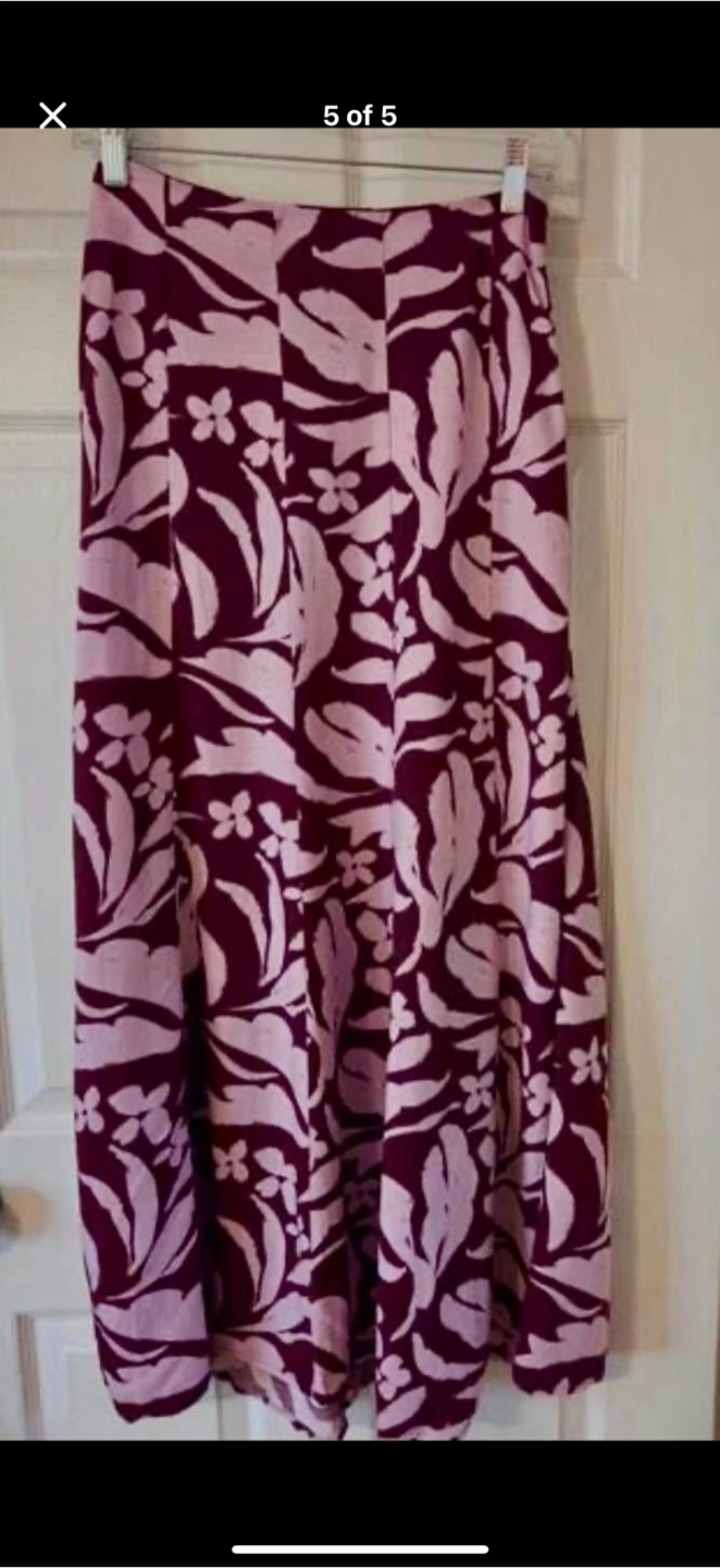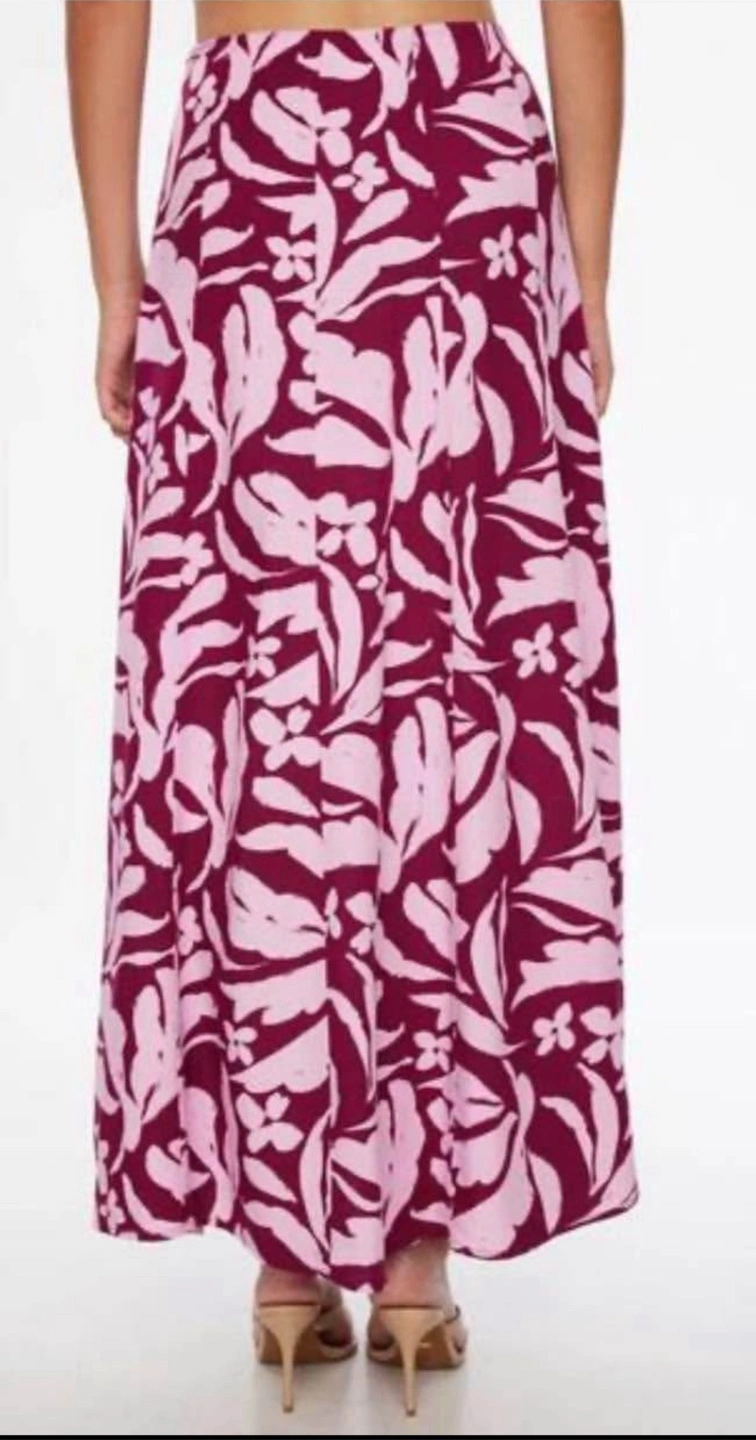 This is a beautiful maxi skirt featuring a burgundy and pink floral print. It is in great condition and would be a lovely addition to any wardrobe! Purchased from dynamite. Size small.