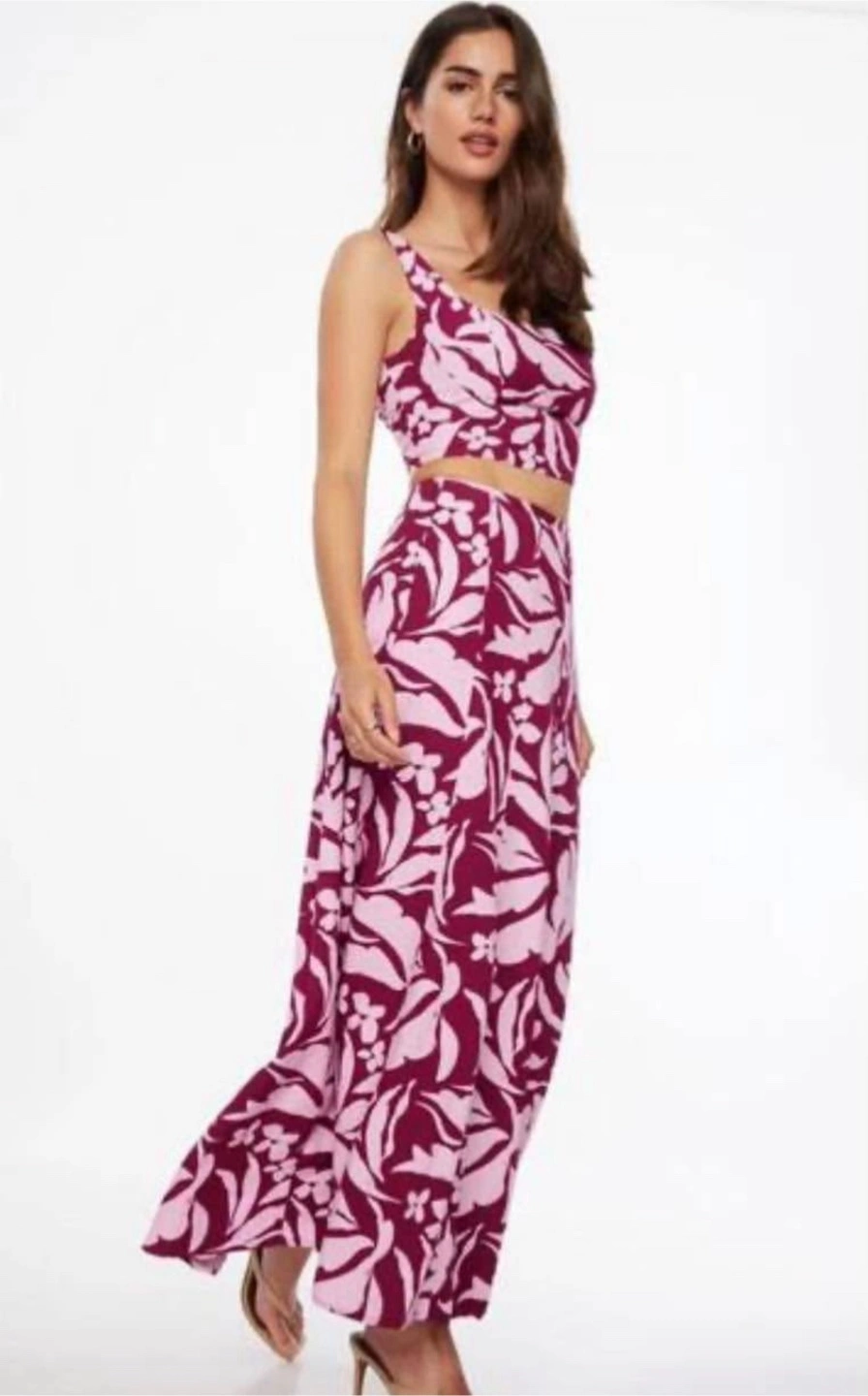 Dynamite Floral Print Maxi Skirt - Burgundy & Pink
