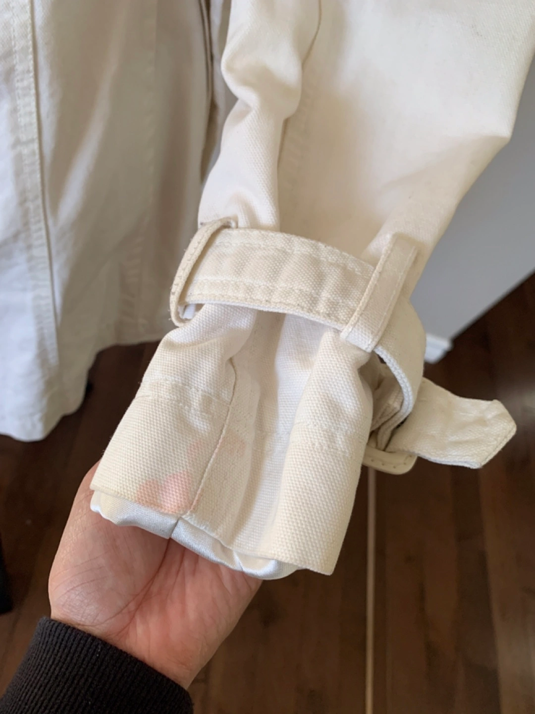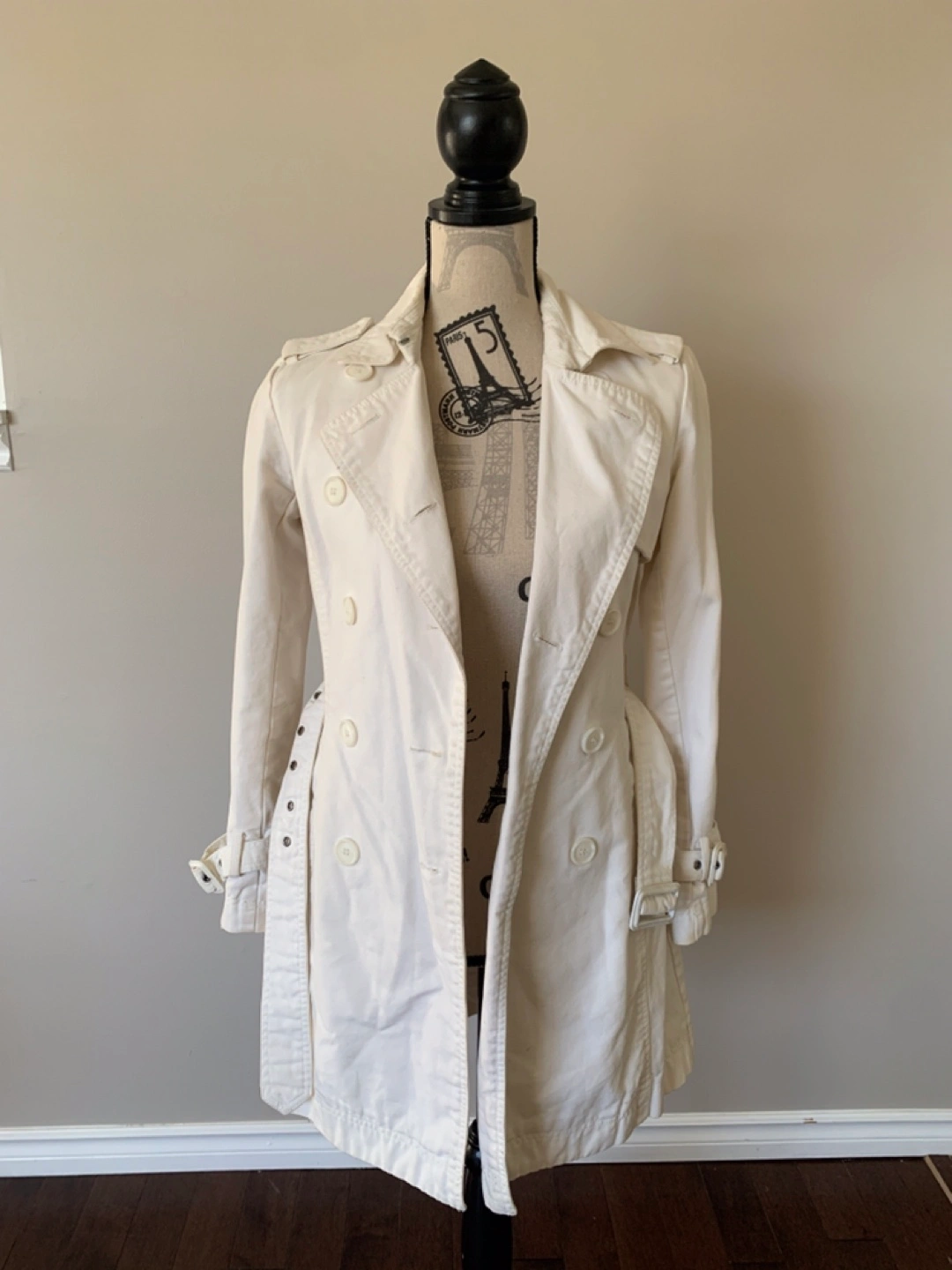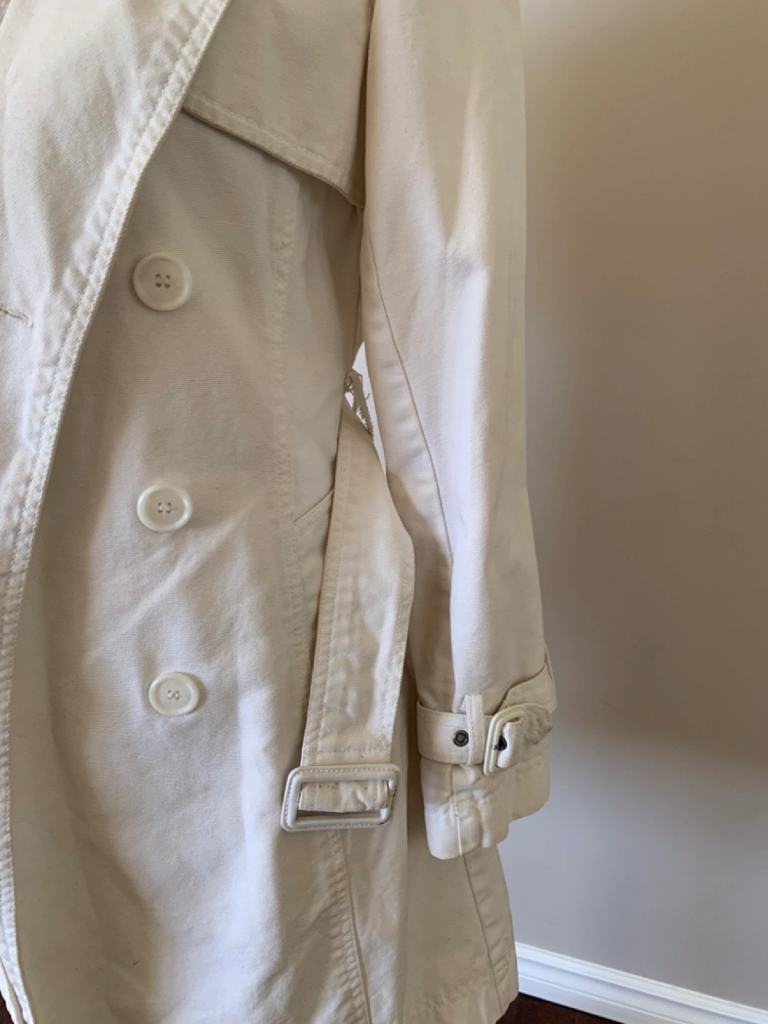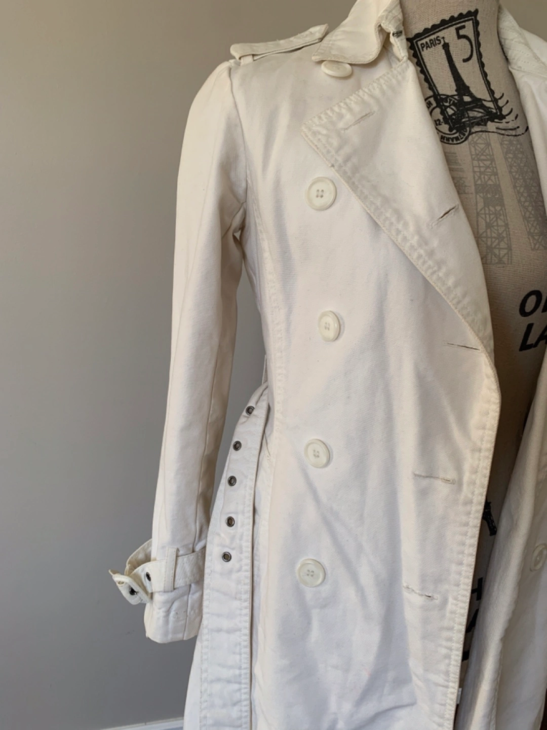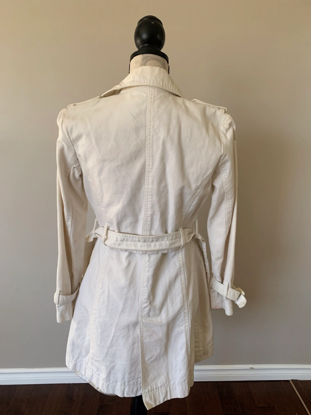 Dynamite Women’s white Denim Coat in size XS. It has couple stains on sleeve and inside part as shown on the pics which can be destained with soaking in bleach, just didn’t have time to do so. Other than that,it still in good condition. Price reflects that so no lowballers please. From smoke-free, pet-free home. Pickup in Millwoods. Check my other posts :)