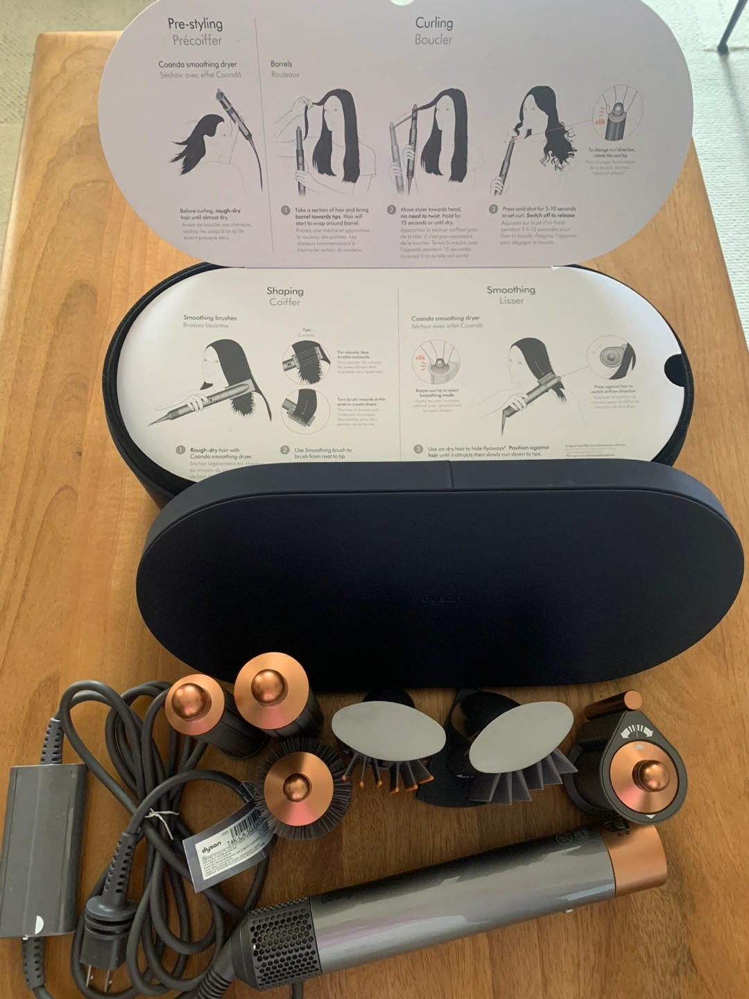 Only used twice! Like new. Dyson Airwrap™ multi-styler and dryer Complete (Copper/Nickel) Dry. Curl. Shape. Smooth and hide flyaways. With no extreme heat.