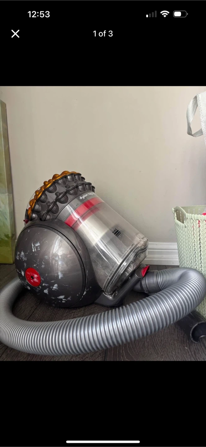 Selling a Dyson Big Ball vacuum cleaner. IThe scratches on the side is from the wall paint. It still works perfectly and comes with all attachments. ,l