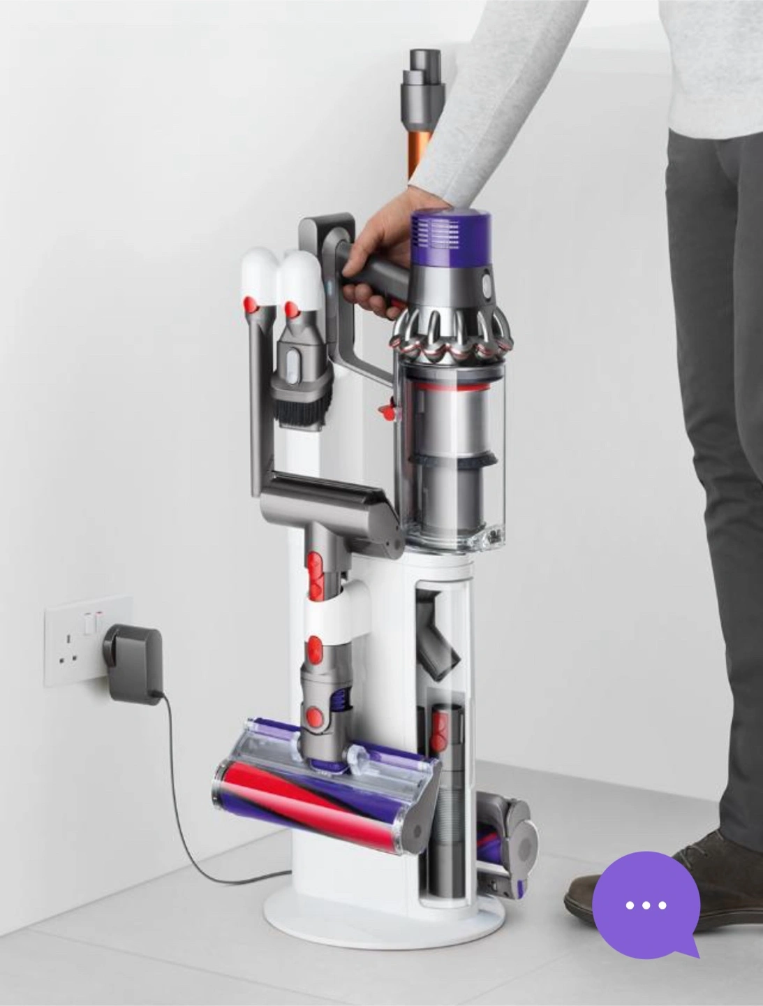 Dyson Cyclone V10 Floor Dok/Stand • Free-standing design, engineered to store and charge your Dyson Cyclone V10 vacuum and tools. • Capable of holding 2 cleaner heads and 4 tools • Front slot also allows other tools to be stored • Simultaneously charges your vacuum whenever it is docked • Color- white • Very good condition • Location- Yorkville, Toronto • Available for pick-up only N.B: Listing does NOT include vacuum nor the tools.