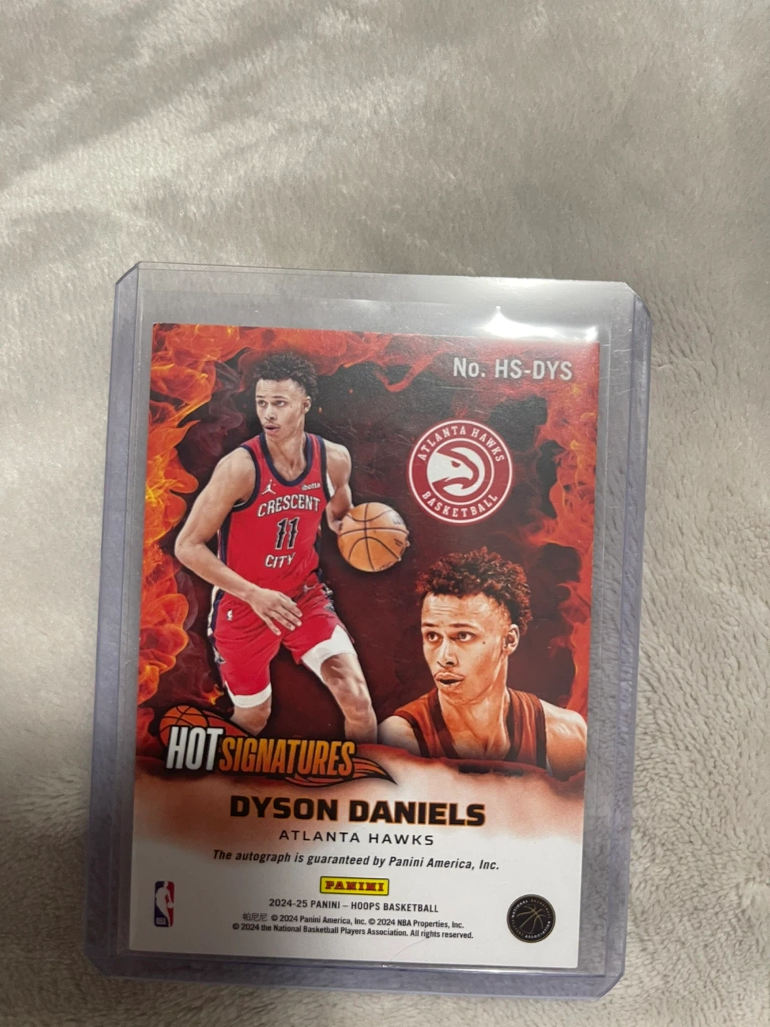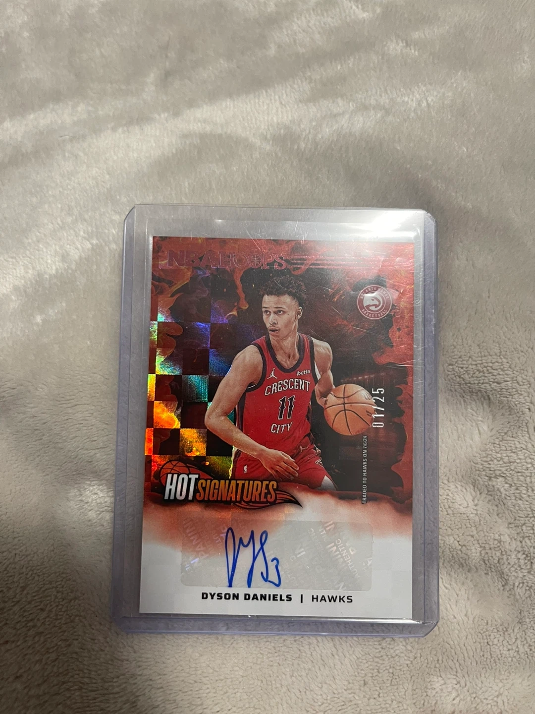 Selling a Dyson Daniels Atlanta Hawks basketball card from the Panini Hoops series. It's part of the Hot Signatures collection. Numbered 1/25
