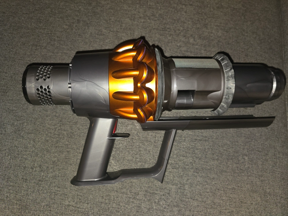 This is a the original Dyson Main Body Service for vacuum V11, perfect for easy cleaning. It has an interesting colour scheme, with orange and grey accents. The handle looks easy to grip and use.