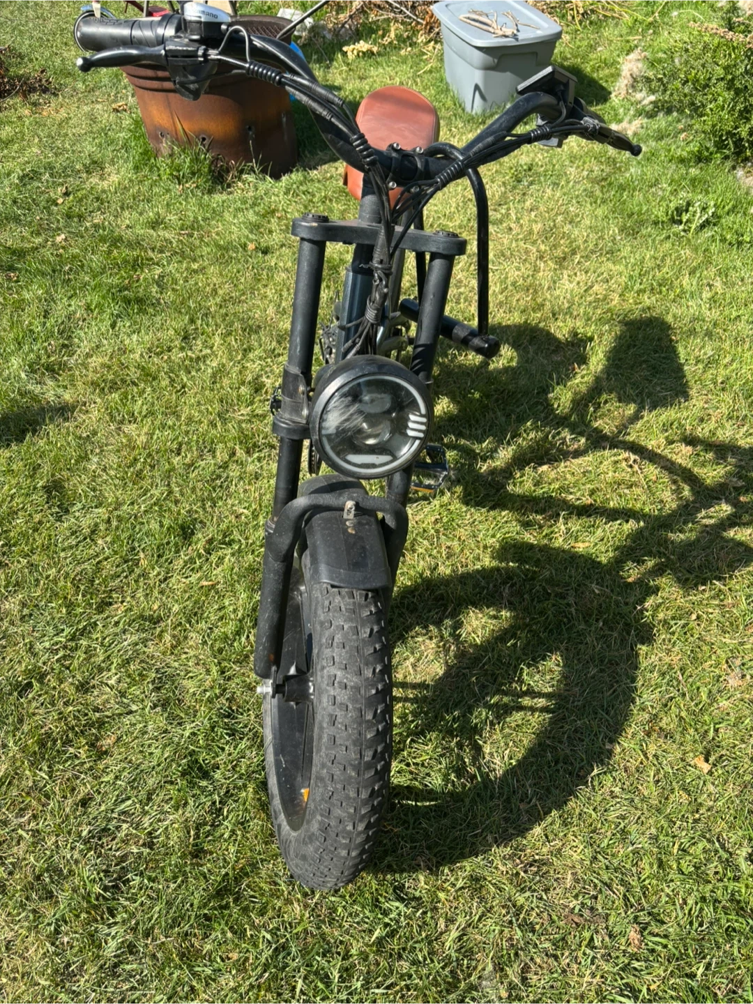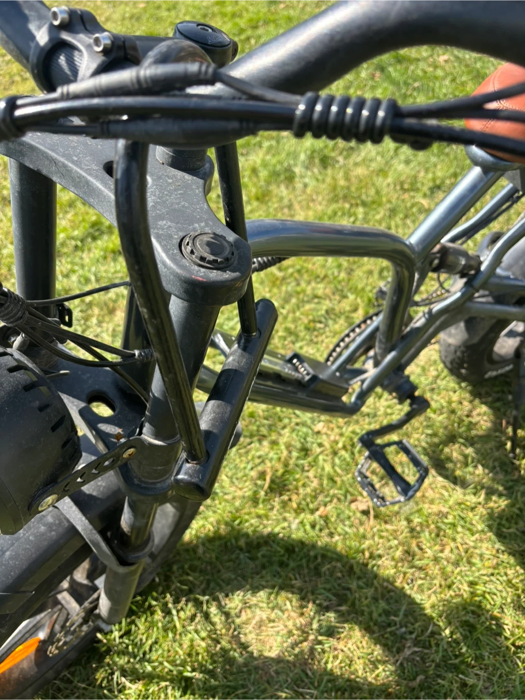 (PRICE NEGOTIABLE) - Selling an e-bike that's ready for new adventures! It has a unique brown seat and looks like a fun ride. Perfect for getting around town or exploring bike paths. It's in used condition. CAN ONLY BE PICKED UP SINCE I DO NOT DRIVE SO I CAN'T DROP IT OFF. Pick up only (Notes): the breaks are a bit weak, they'll probably need some fixing or replacement, front turn signals were broken and had to be thrown out but can be easily replaced, the back one still works perfectly. Has a horn, head light. Goes 25Km an hour with just the throttle, it can go faster down hill or your pedalling along with it. The lock attached to the bike is a lock i had previously that i decided to include with the bike. Other than the missing front turn signals and weak breaks, everything else is fine