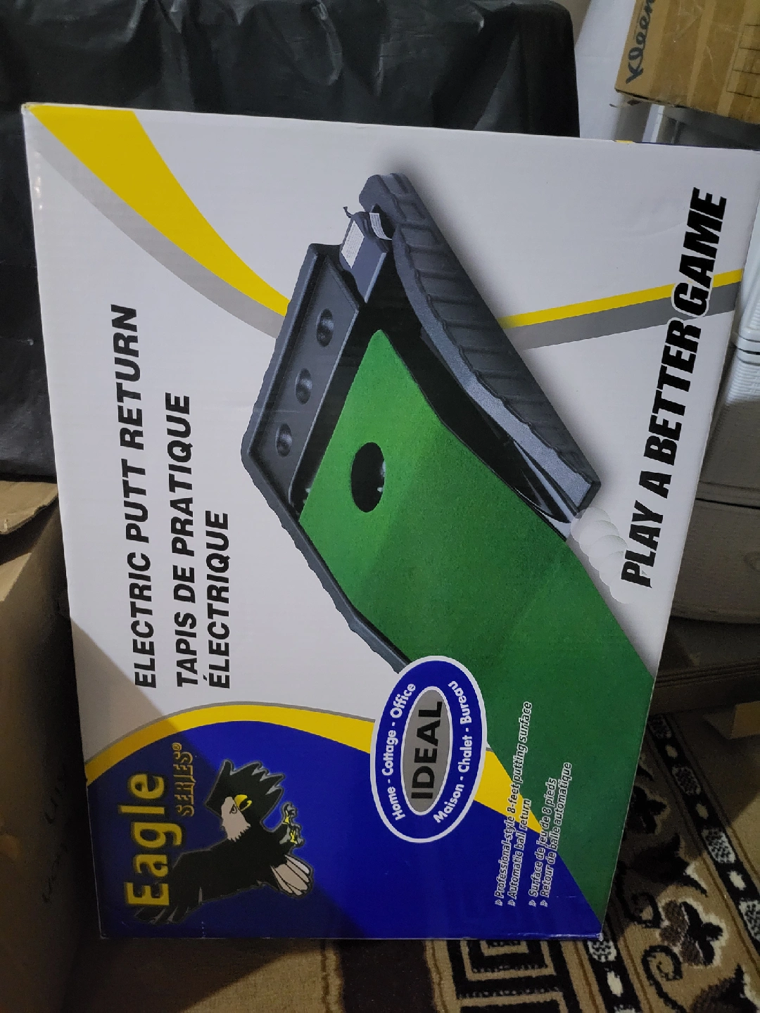 Selling a brand new Eagle Series Electric Putt Return, still in its original box! Perfect for practicing your putting skills at home, in the cottage, or even at the office. It features an 8-feet putting surface and automatic ball return for continuous practice. Play a better game with this awesome device!