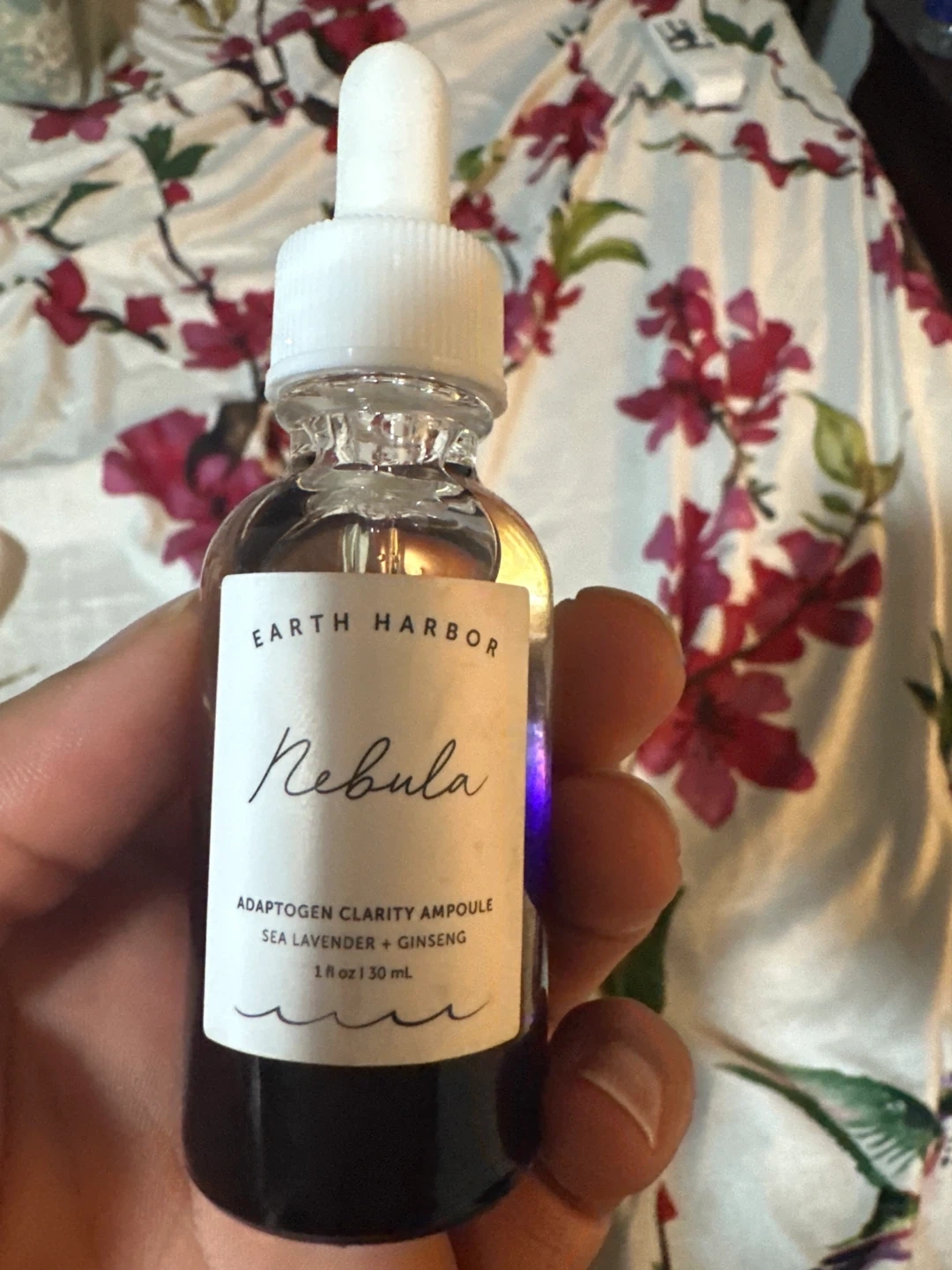 Selling an Earth Harbor Nebula Adaptogen Clarity Ampoule! This ampoule contains sea lavender and ginseng. It comes in a 1 fl oz (30 ml) bottle. Perfect for adding to your skincare routine!