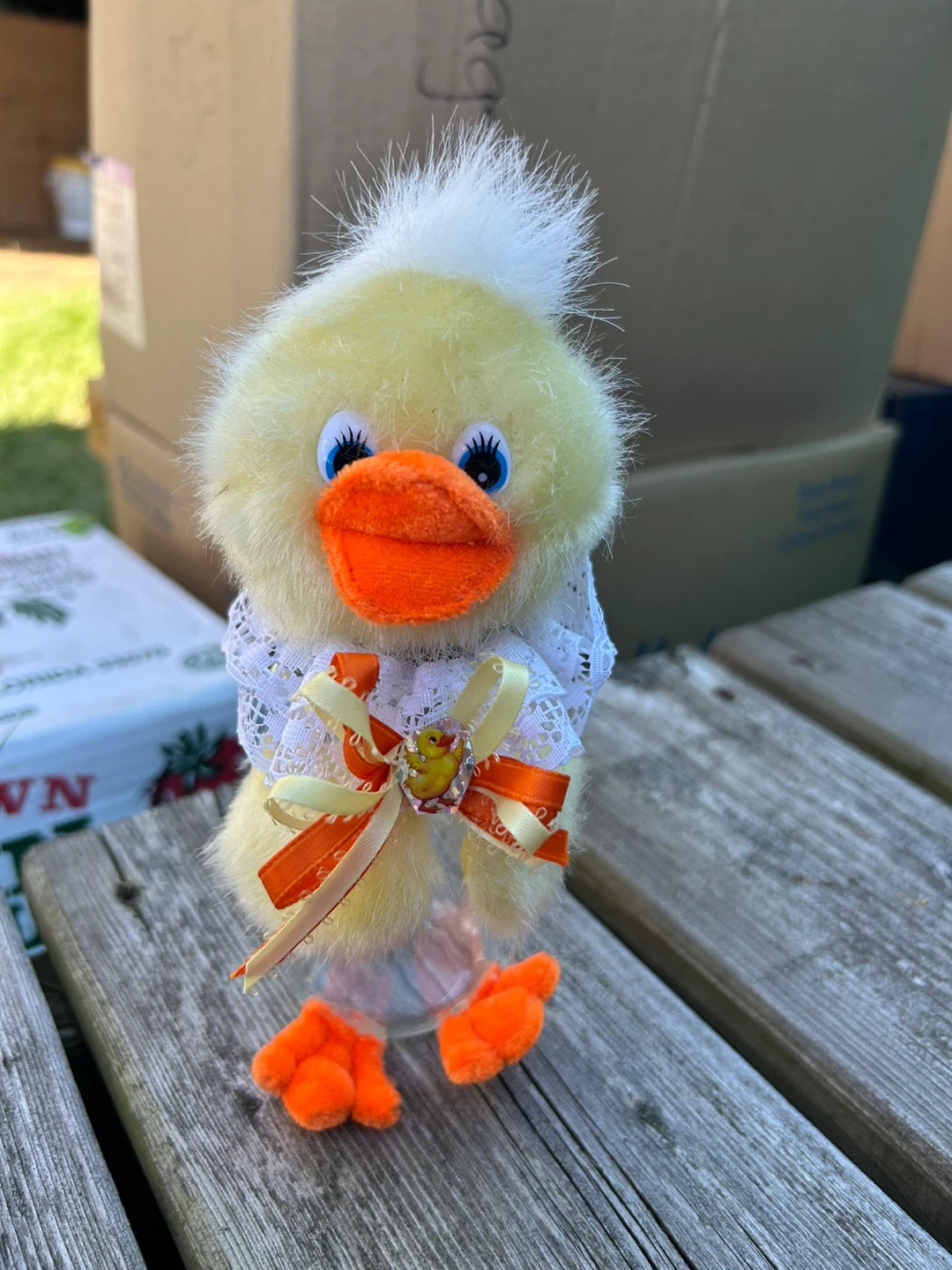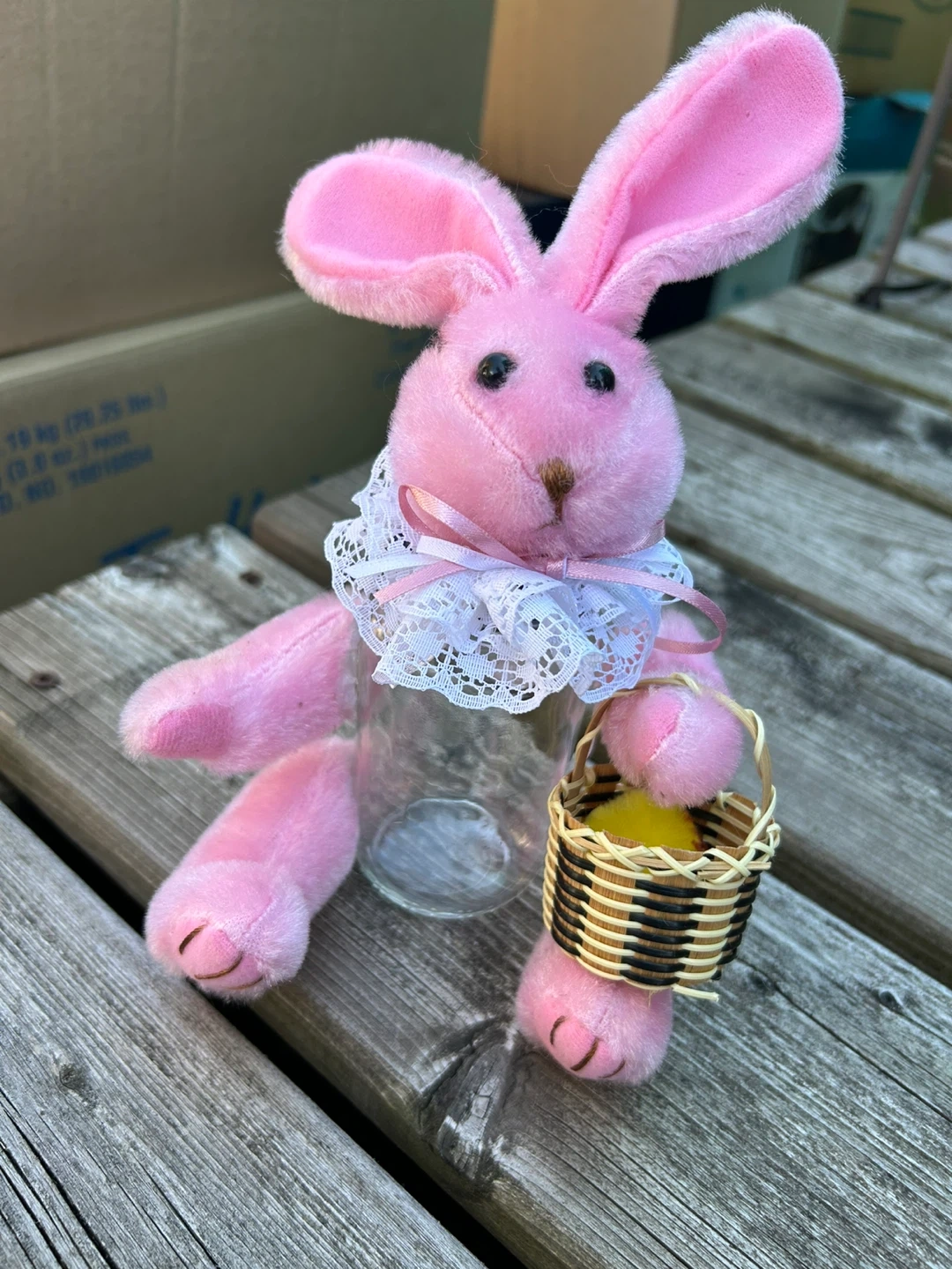 Selling these adorable Easter decorations, a pink bunny and a yellow chick, each attached to a glass jar.
