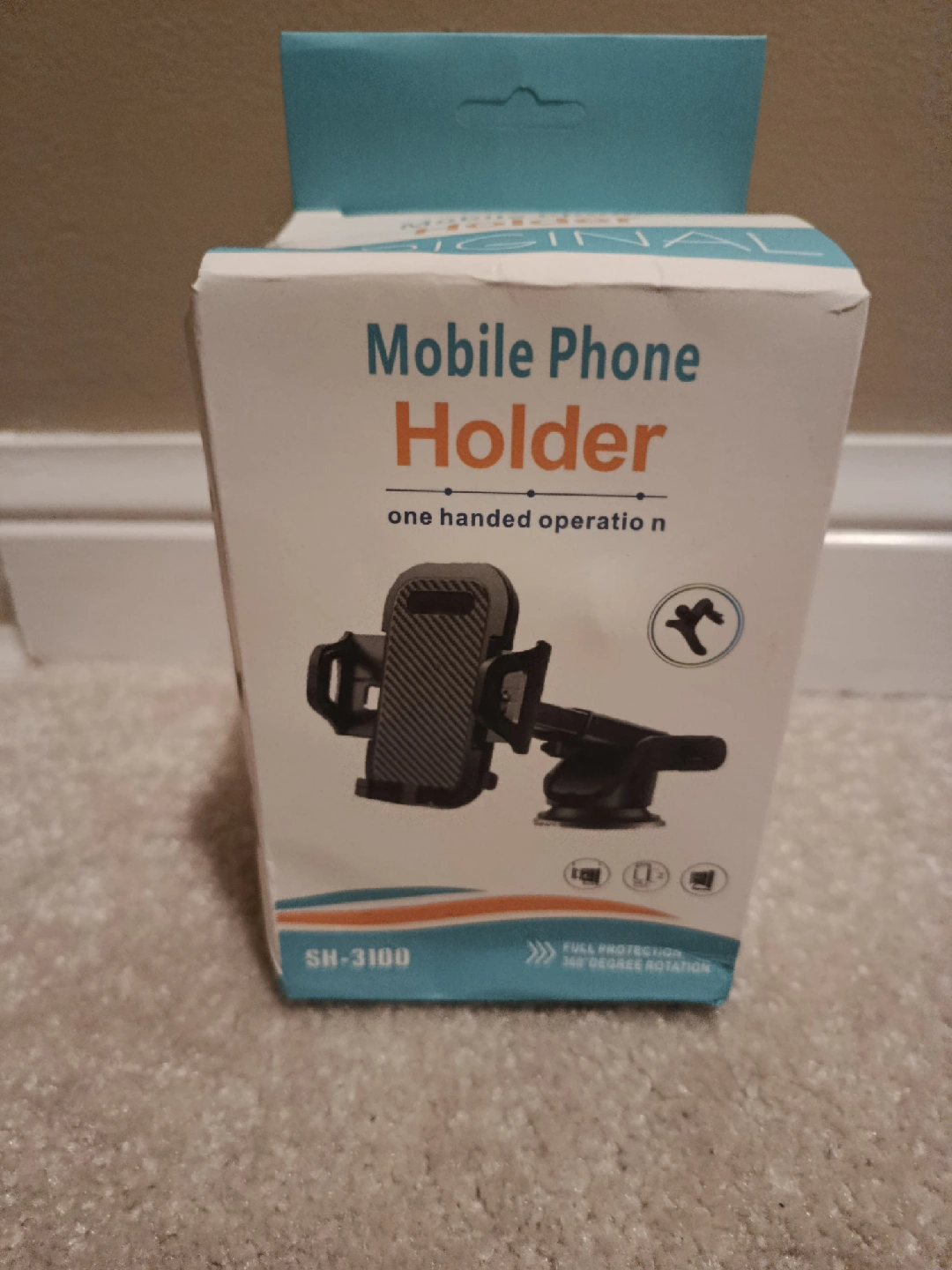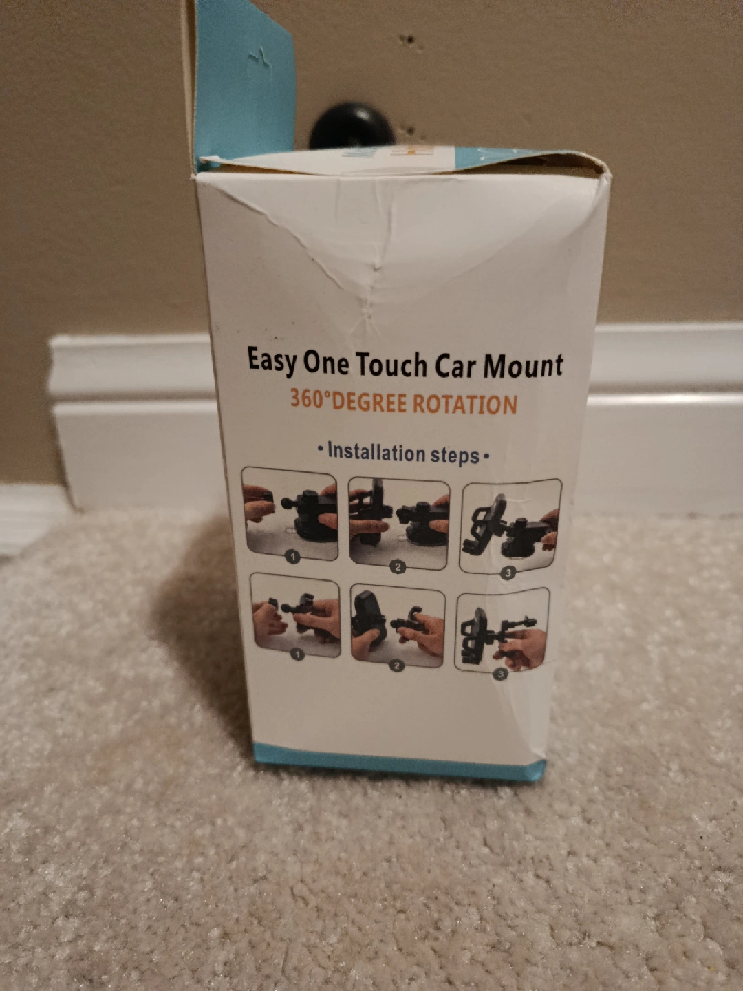 Selling a brand new Easy One Touch Car Mount! It's a mobile phone holder with one-handed operation and full protection. The box shows installation steps and it features 360-degree rotation. Model number is SH-3100
