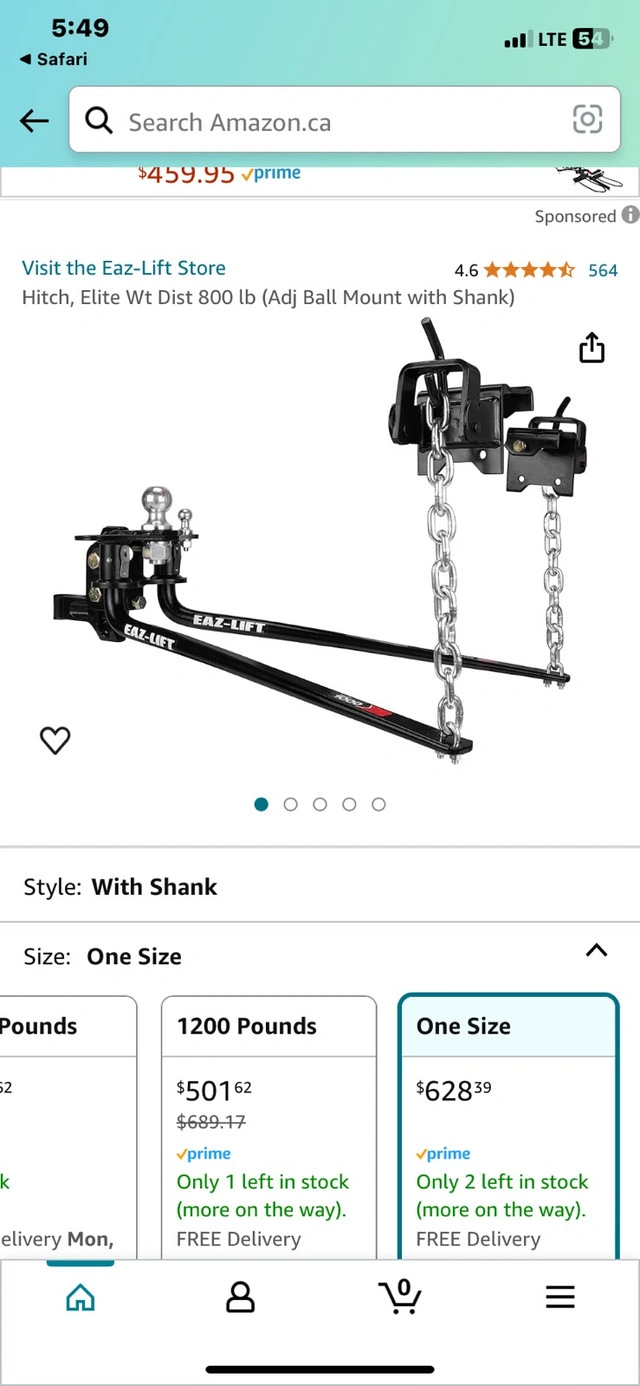 The Eaz-Lift TR3 800 lb. Kit is a weight distribution hitch with a 1,000 lb. maximum tongue weight rating that features adjustable sway control. By simply adjusting the clamp, you can decide how much sway control is exerted on the trailer. The TR3 will distribute the weight of your trailer across the axles of the tow vehicle and provide as much sway control as you choose. Or, turn the sway control completely off in dangerous or icy road conditions. Its streamlined design makes the hitch and the trailer move as one, while creating a sleek look. Includes a pre-installed 2 5/16-inch hitch ball. The Eaz-Lift TR3 is easy to install on top-mount or bottom-mount coupler style trailers. Maximum Tongue Weight: 1,000 lb.; Maximum Gross Trailer Weight: 10,000 lb. Easy to Install: The Eaz-Lift TR3 is easy to install on top-mount or bottom-mount coupler style trailers new in box