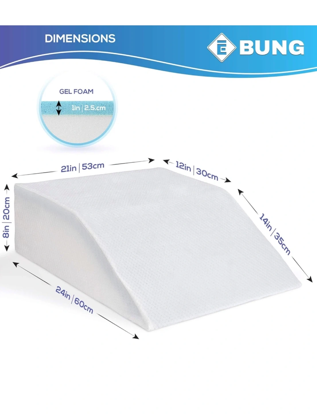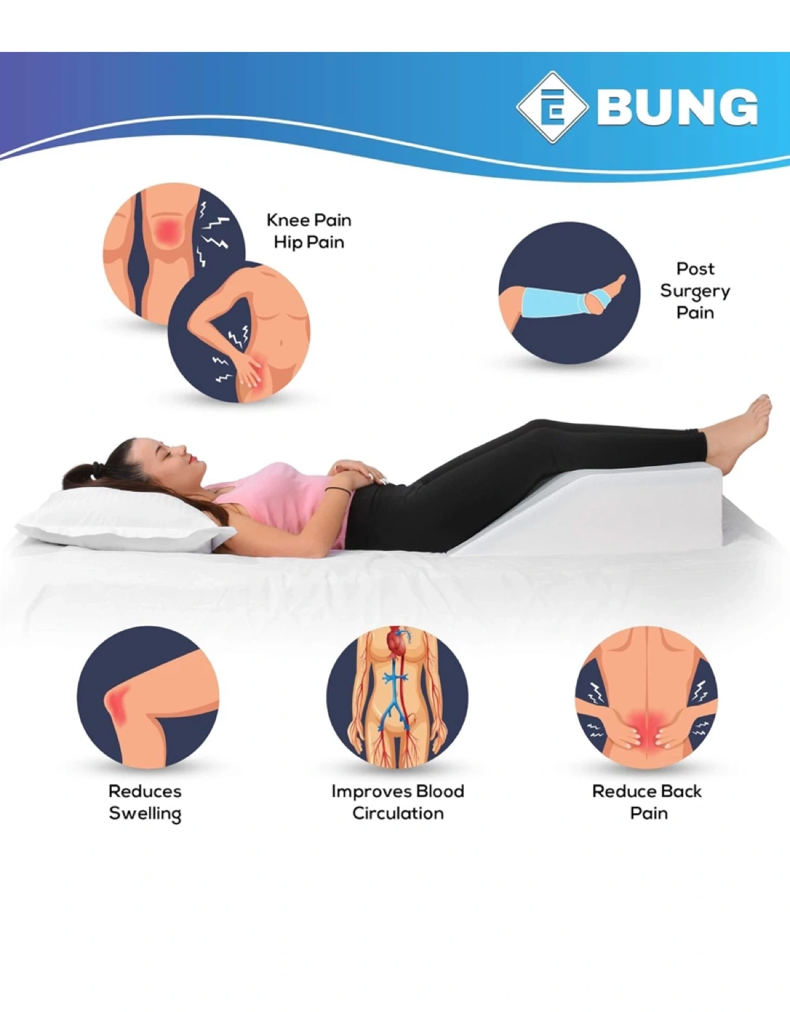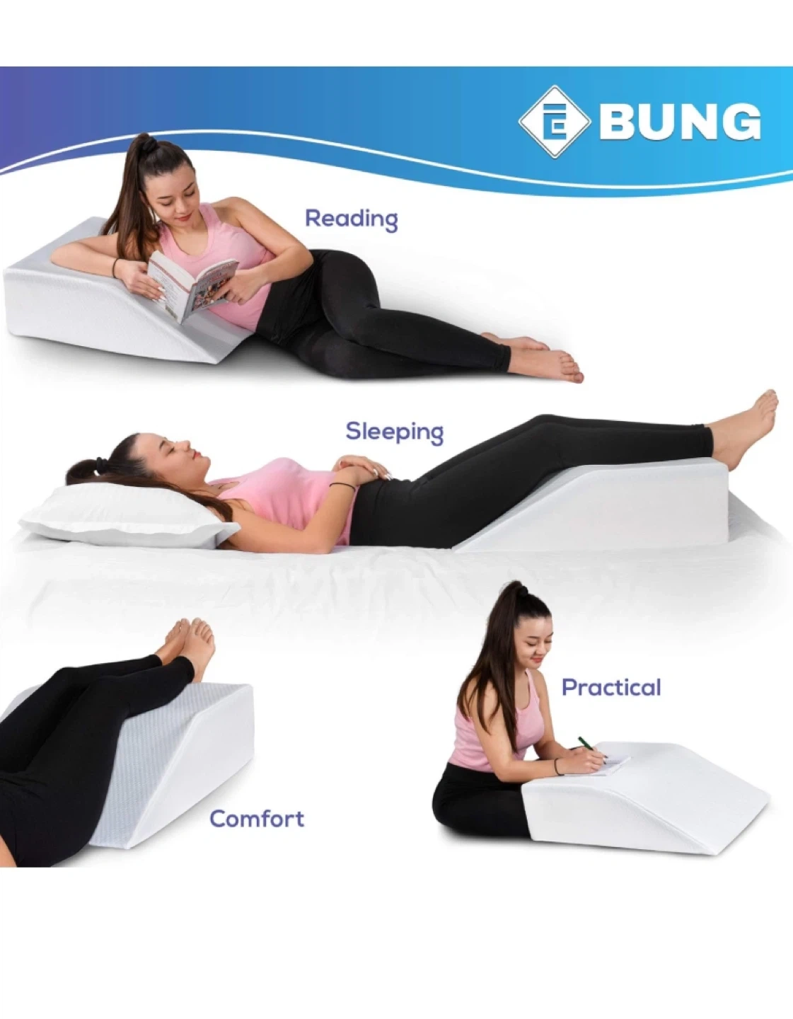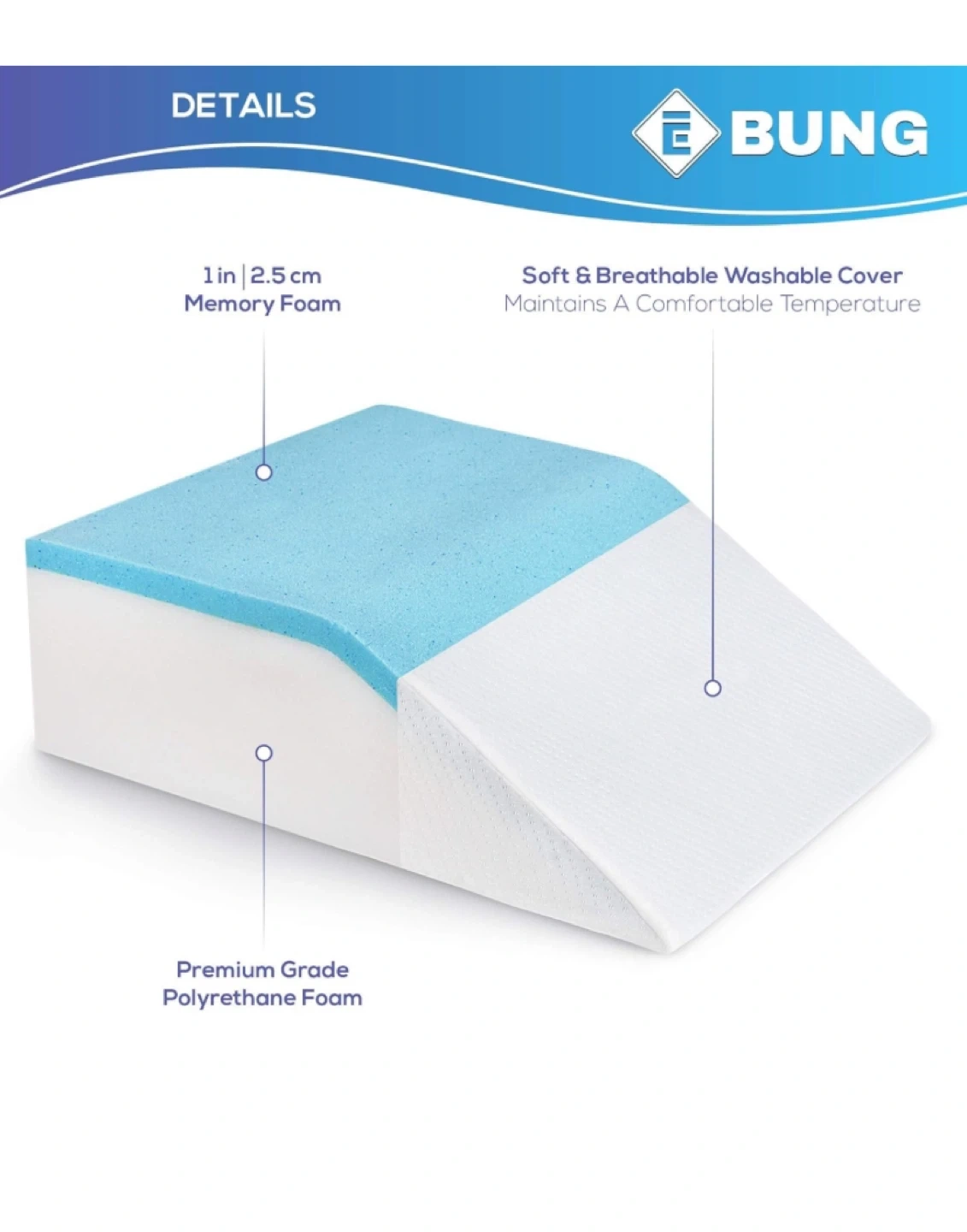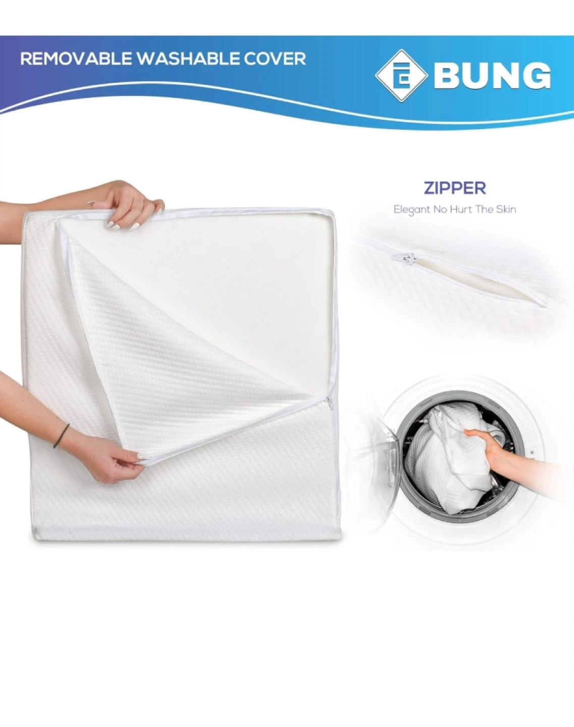 This Ebung leg elevation pillow is designed for comfort and practical use! The soft and breathable washable cover maintains a comfortable temperature, and the zipper is designed to be elegant and not hurt the skin. Key features: - Removable washable cover - 1in | 2.5cm memory foam - Premium grade polyurethane foam - Dimensions: 21in x 12in x 8in