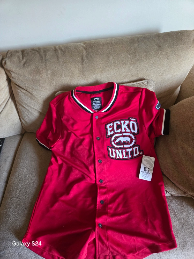 Selling a red Ecko Unltd. baseball jersey. It features the Ecko Unltd. logo on the front. Great for casual wear or showing off your style!