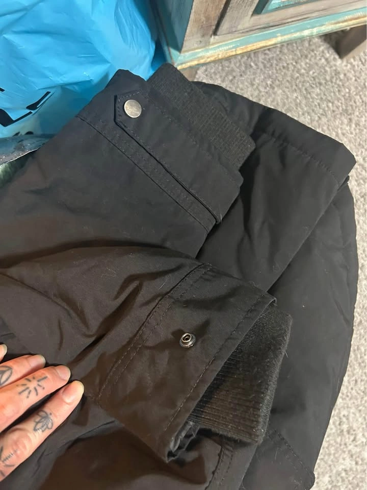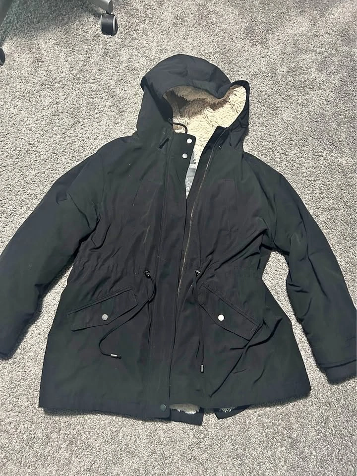 Only wore for half a season last winter. The clip detail in one cuff did fall off shortly after I bought it. (Shown in pictures) I do believe I still have it. I just never sewed back on.