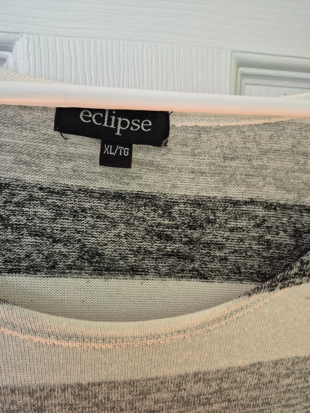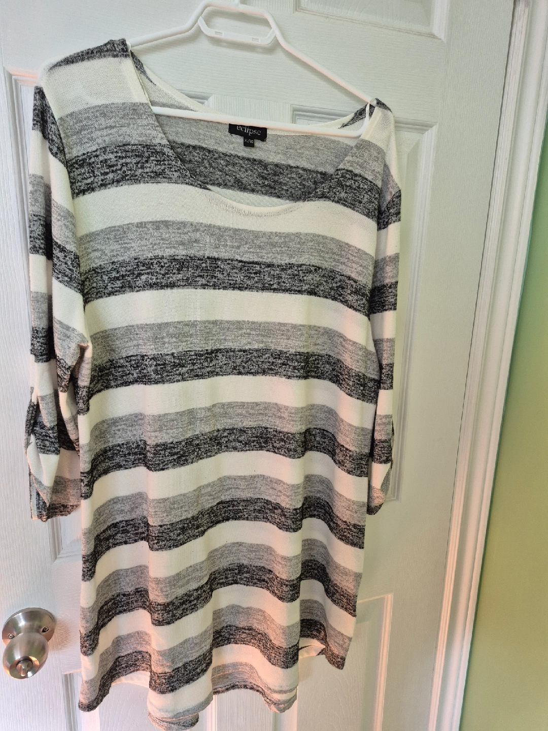 Selling an Eclipse tunic top. It's an XL and has a nice striped pattern in shades of grey and white. The sleeves can be rolled up and buttoned for a different look. Great for casual wear!