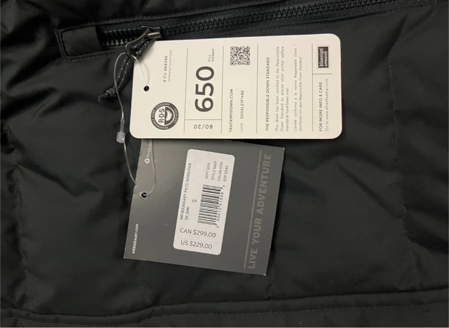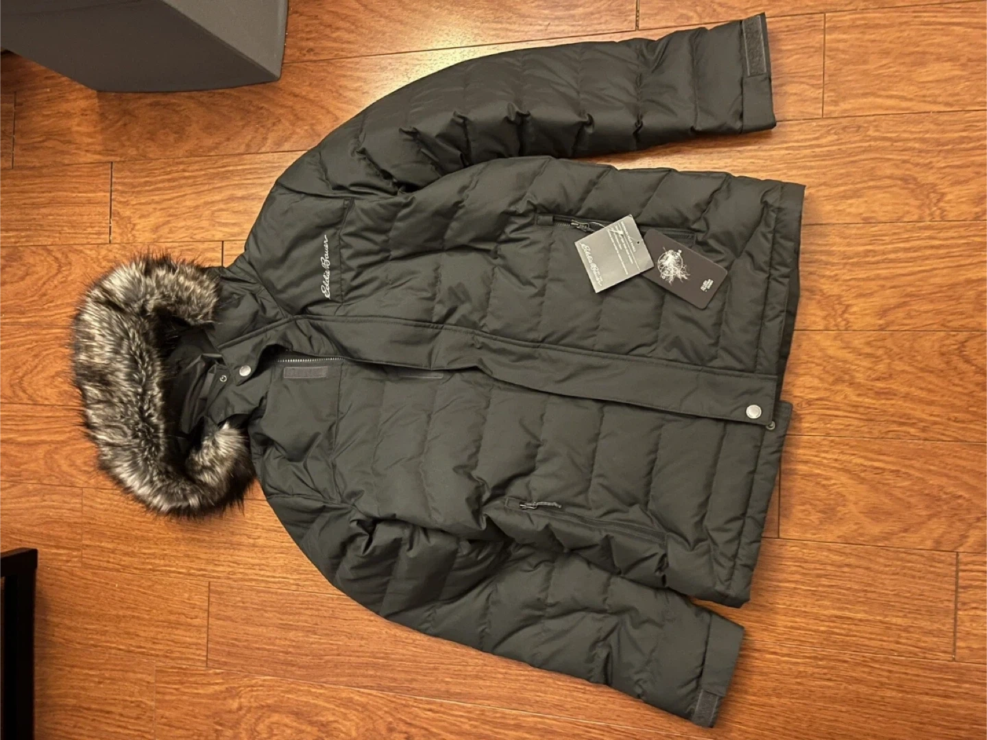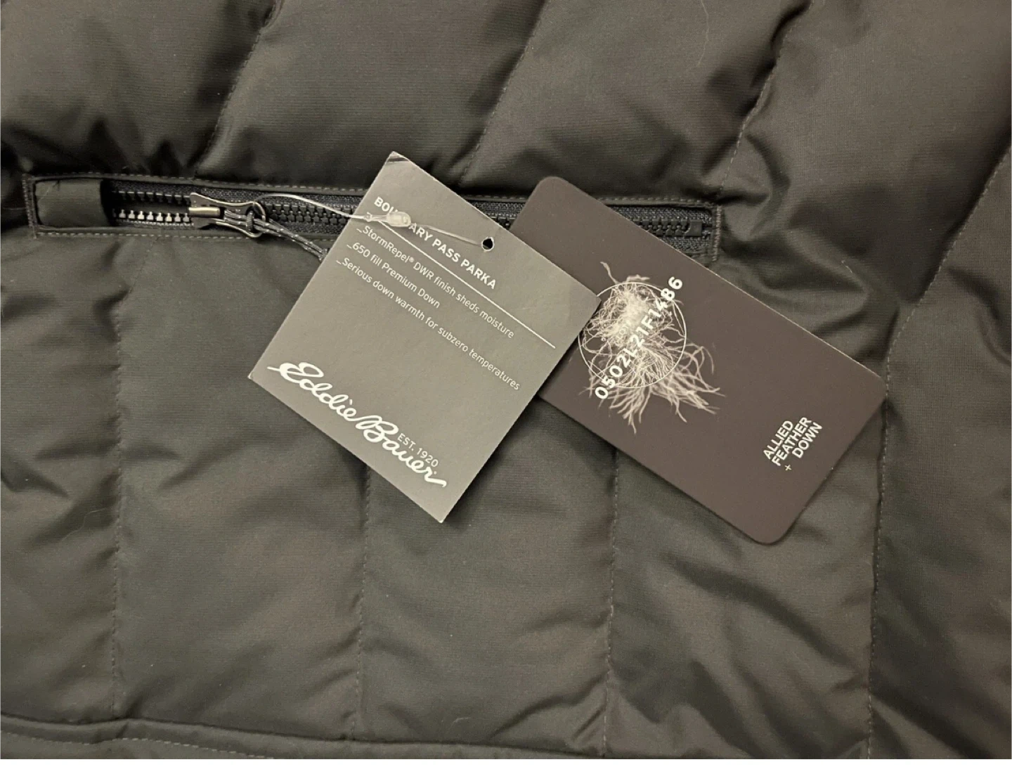 Eddie Bauer Boundary Pass Down Parka Jacket dark smoke size S Brand New With Tags, very warm and looks great