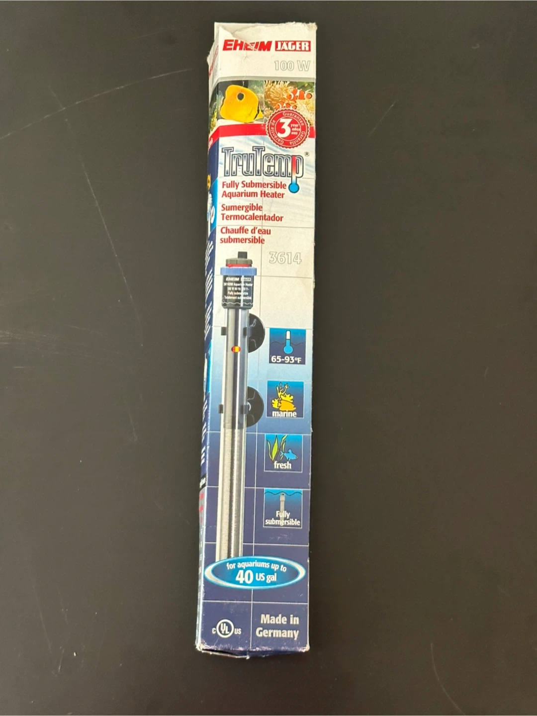 Selling a fully submersible Eheim Jager True Temp aquarium heater. It’s a 100 watts and good for fish tanks up to 40 gallons. Can be used in fresh or salt water tanks.