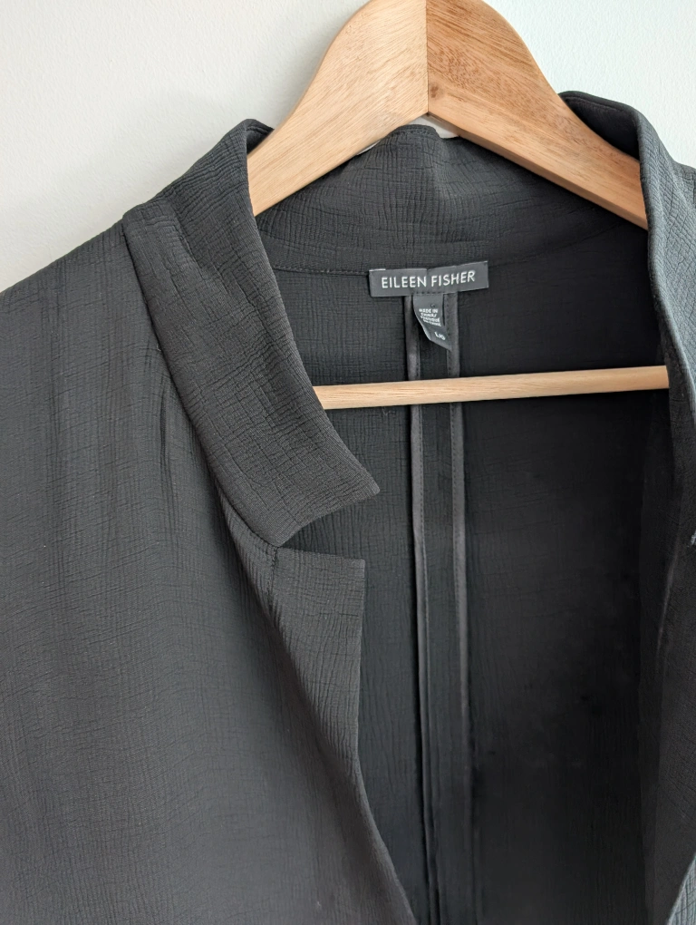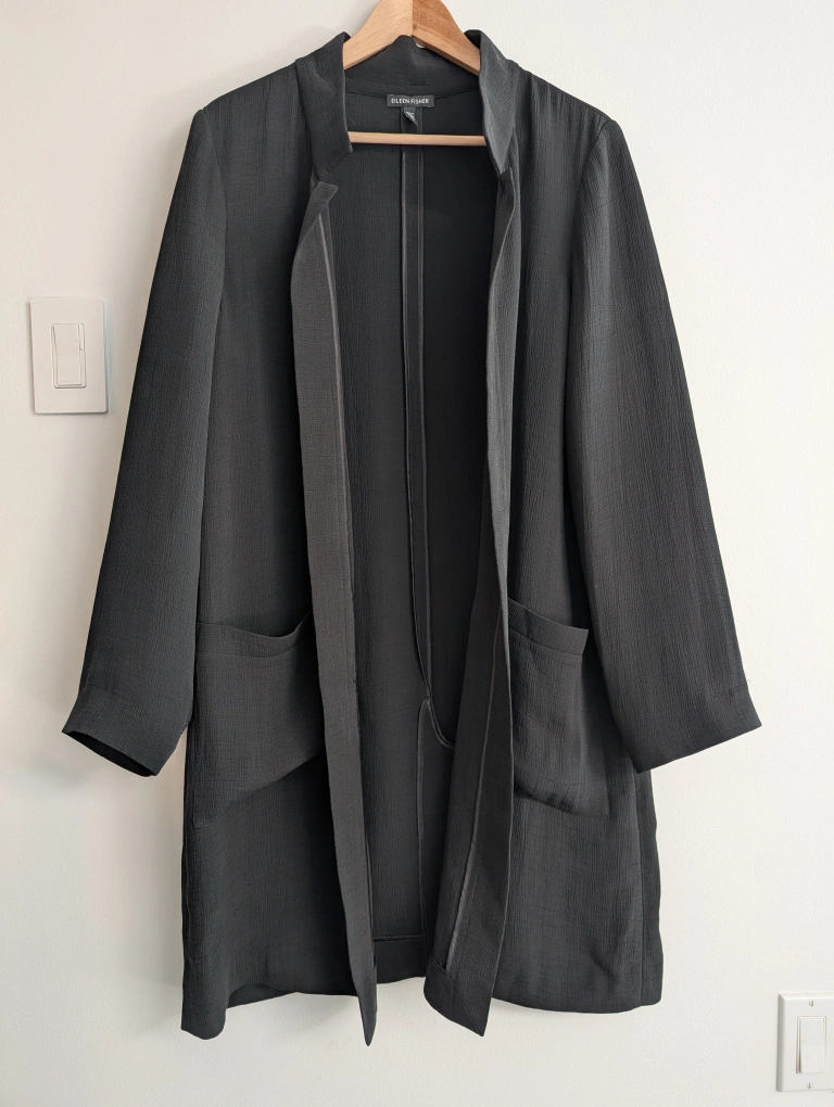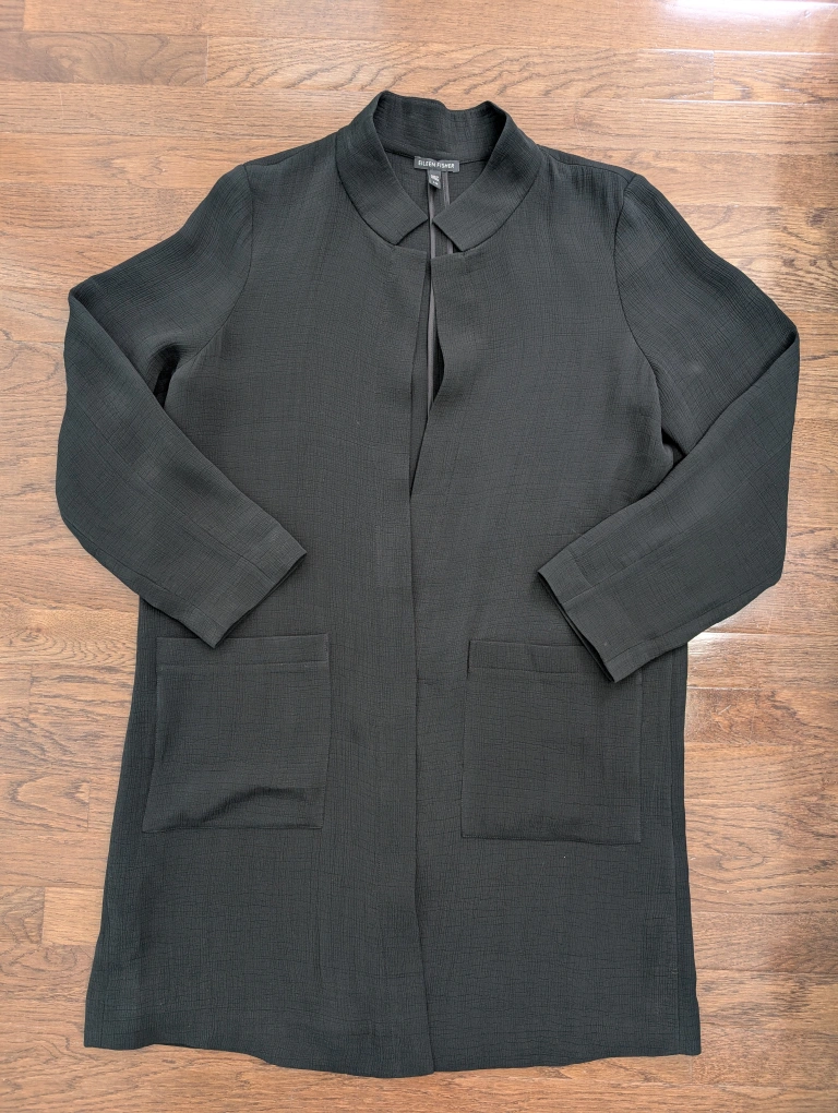 Eileen Fisher Black silk open front trench cardi Jacket, Size L