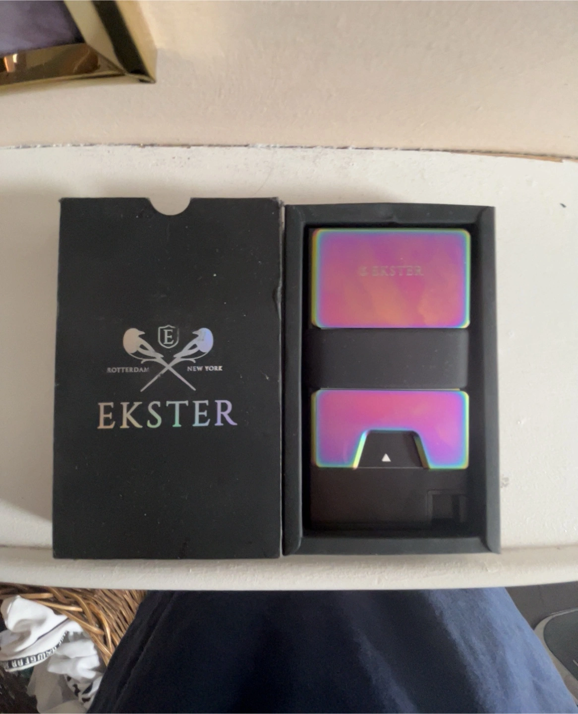 Selling an Ekster wallet, comes with the original box! It's in great shape and ready for a new home. This wallet is perfect for keeping your cards and cash organized in a sleek and stylish way