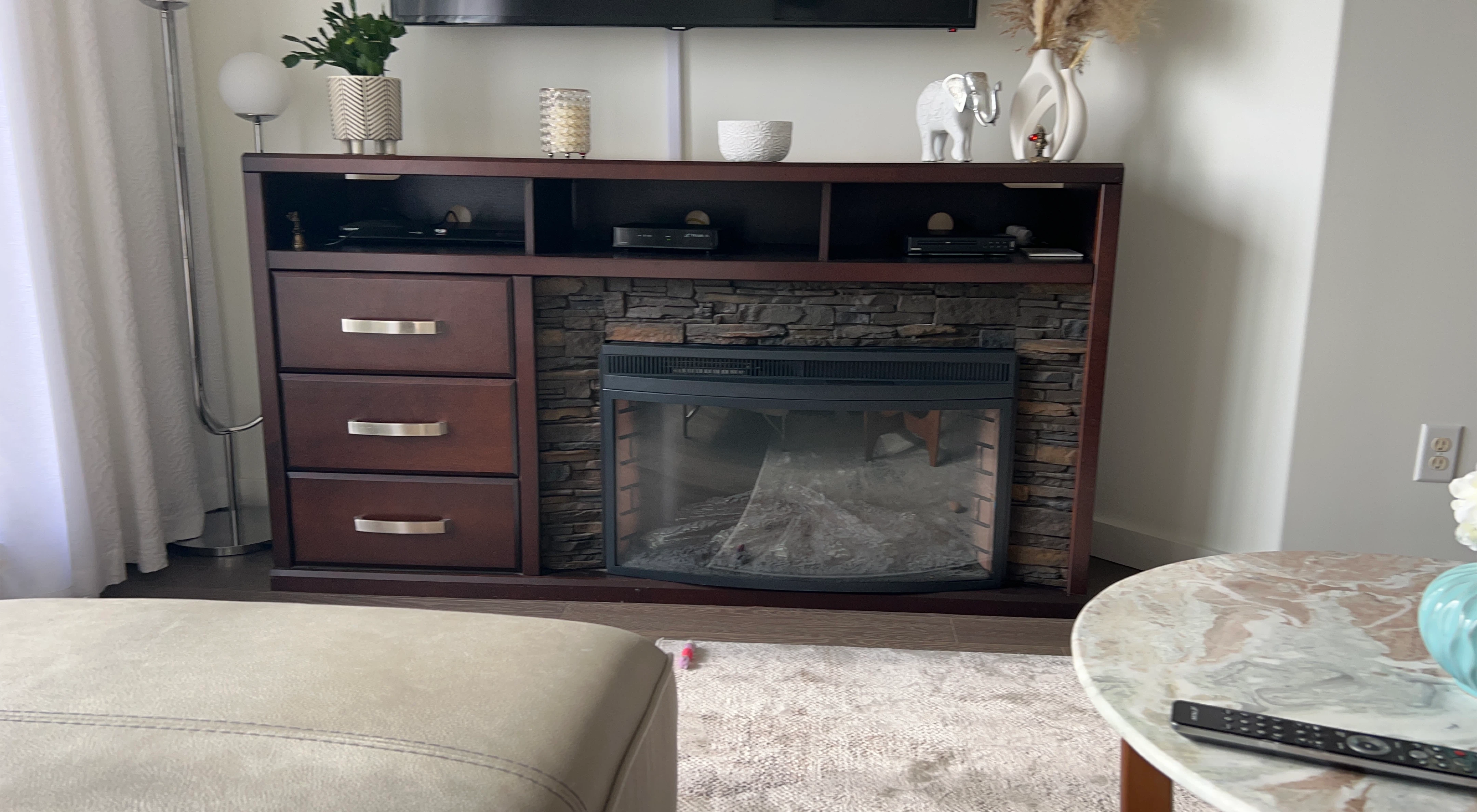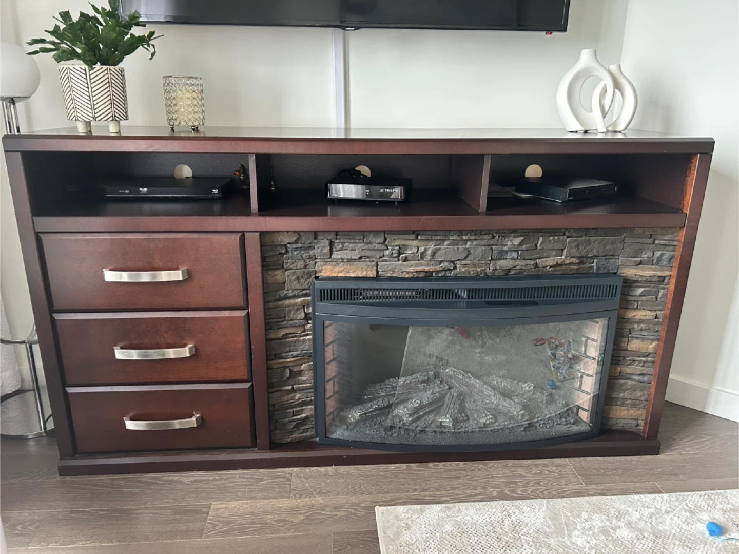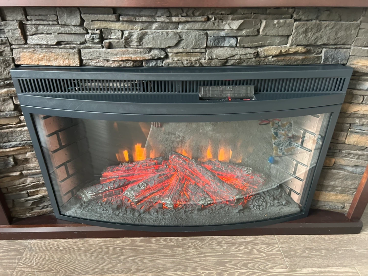 Electric fireplace insert in good condition. It features realistic-looking flames and a sleek design that fits well in various spaces. Perfect for adding warmth and ambiance to your home. Can be also used as TV stand