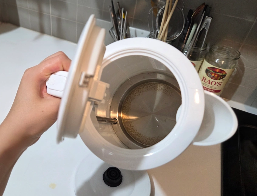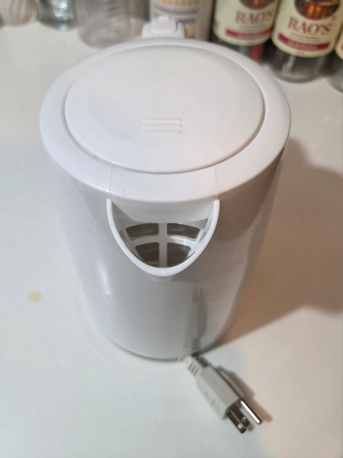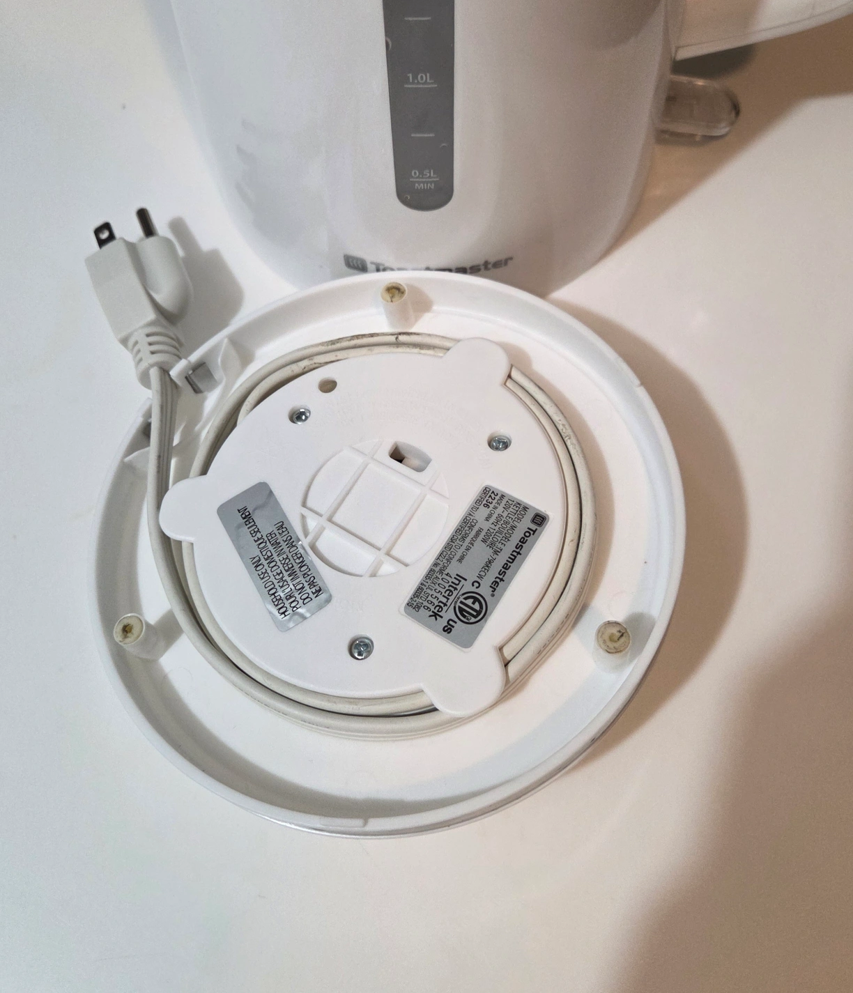 Selling a Toastmaster electric kettle in white. It's in great shape and ready to quickly boil water for your tea or coffee. Always cleaned and well-maintained. The small spots on the bottom are just natural mineral deposits from water; completely harmless and common with kettles, and they don’t affect performance or taste at all! ★Super quiet★, heats up fast, and comes with the original box. Selling only because I’m moving :)