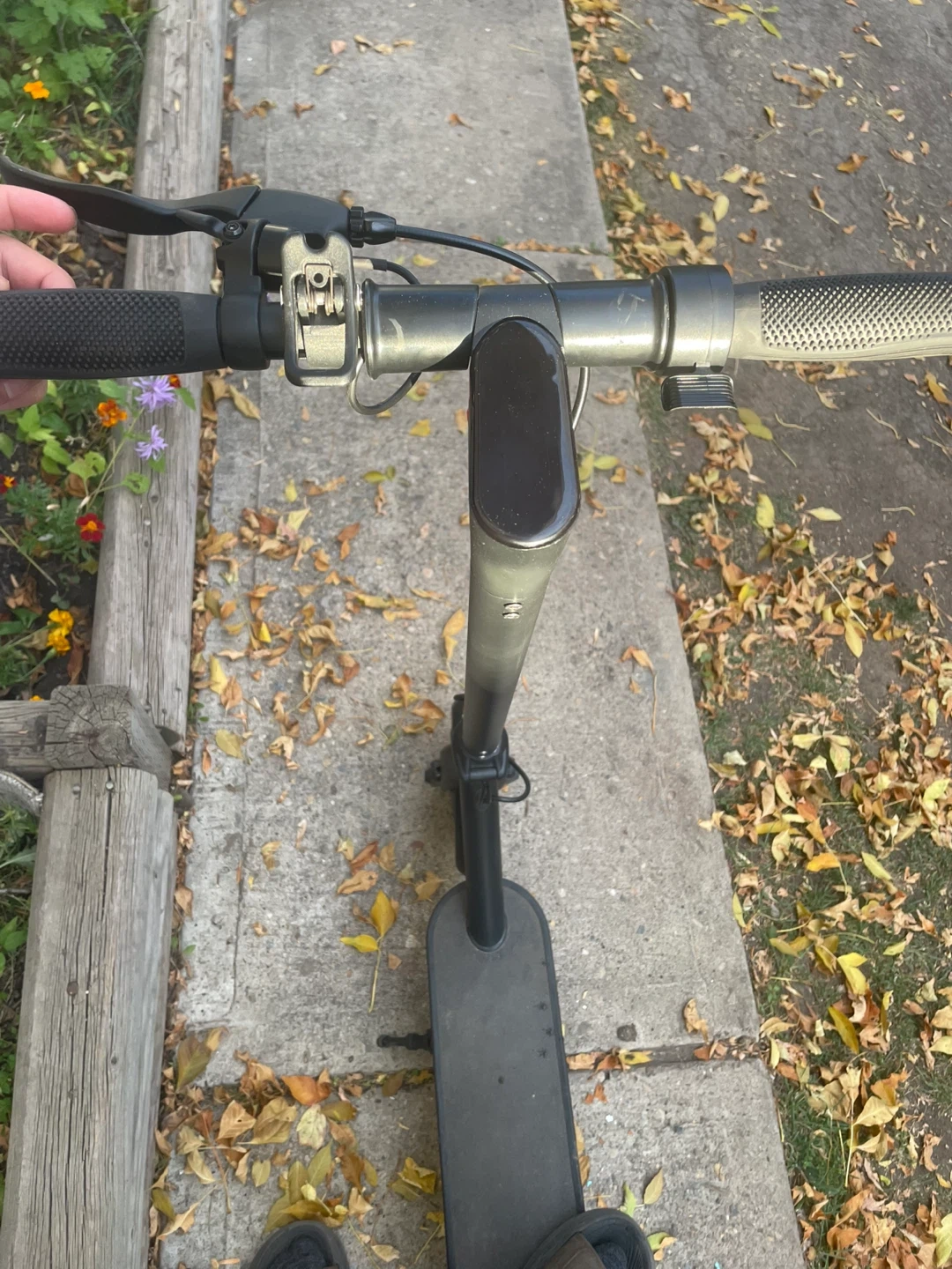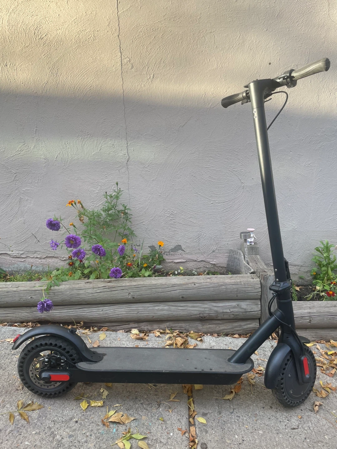 Selling a used electric scooter in black. It's perfect for getting around town! The scooter shows some signs of use but is still in good working condition. Great for commuting or just having fun on the weekends
