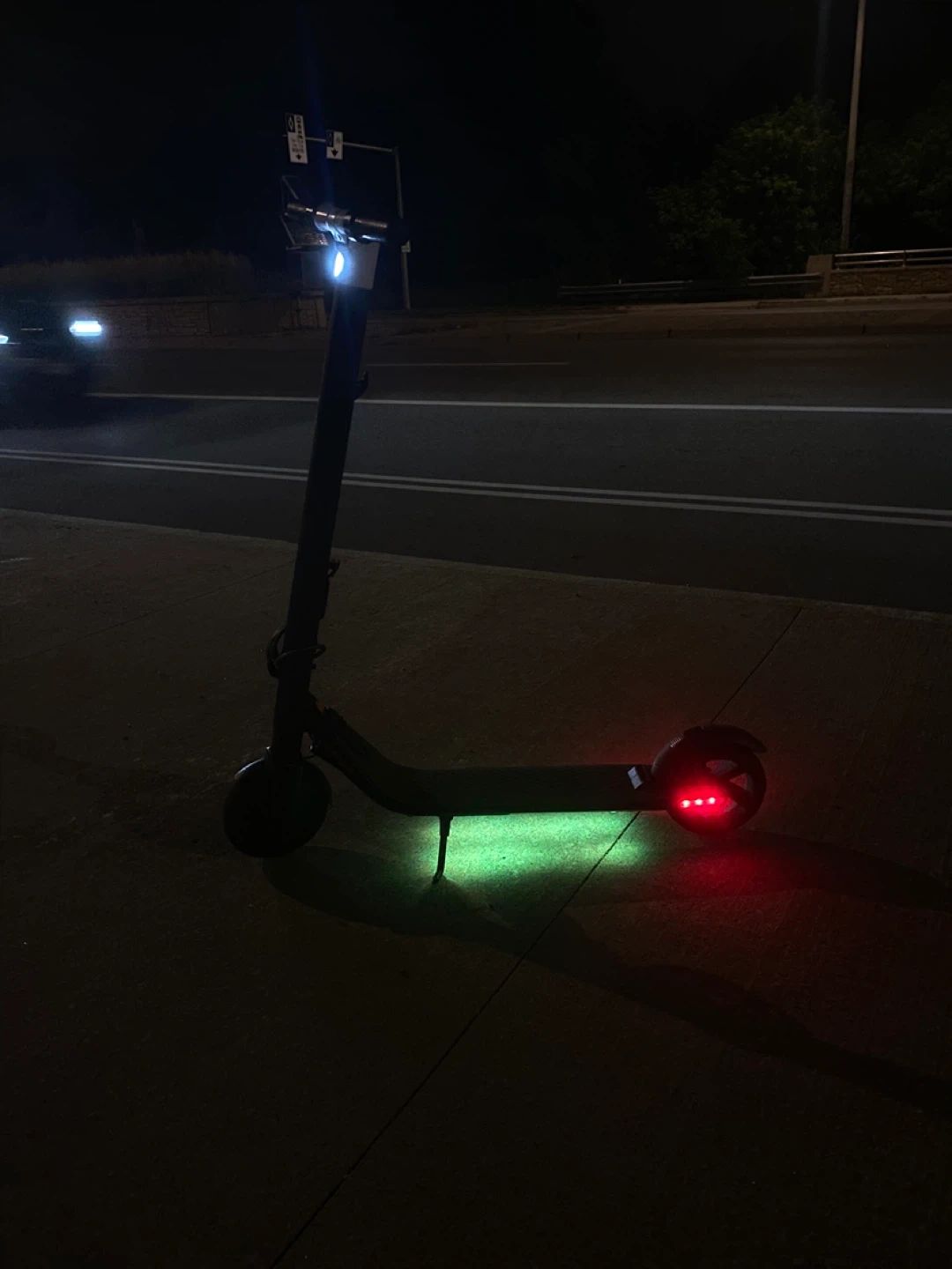 Selling an electric scooter. It has lights on the front and back, as well as underneath. Perfect for getting around town!