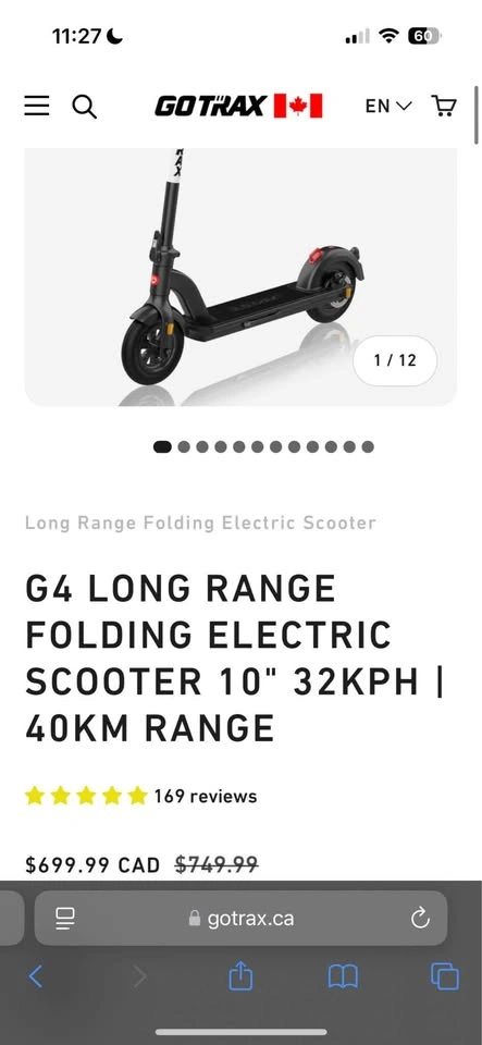 I CAN DELIVER IN OTTAWA! GOTRAX G4 Very good scooter, 40KM Range on full battery, Top speed: 32km/h (20mph) Includes charger as well Selling because this was super useful before getting my license but now just don’t need it