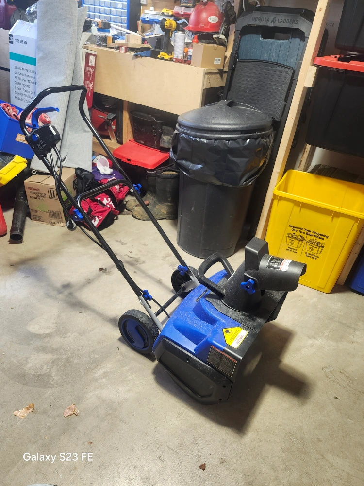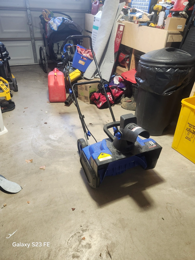 Used electric snow thrower. Blue and black. Good condition. Includes cord. Great for clearing small areas.