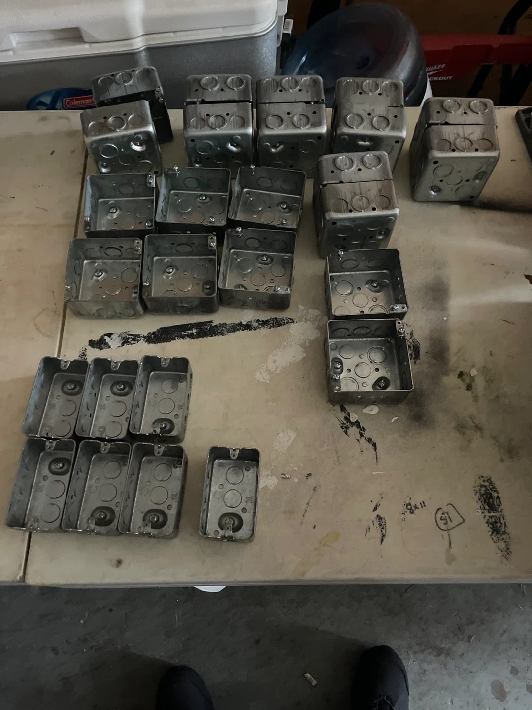 Selling a lot of 27 electrical boxes. They appear to be in good condition and ready for your next project! 7 4”x2 3/8” $3 each 20 4”x4” $5 each