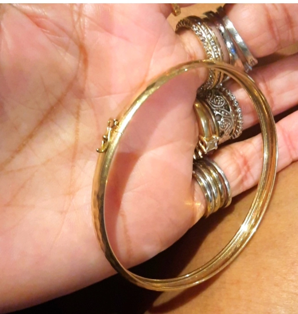 Authentic genuine solid 10k yellow gold etched design ๐ bangle bracelet