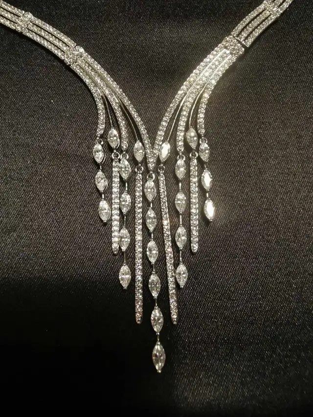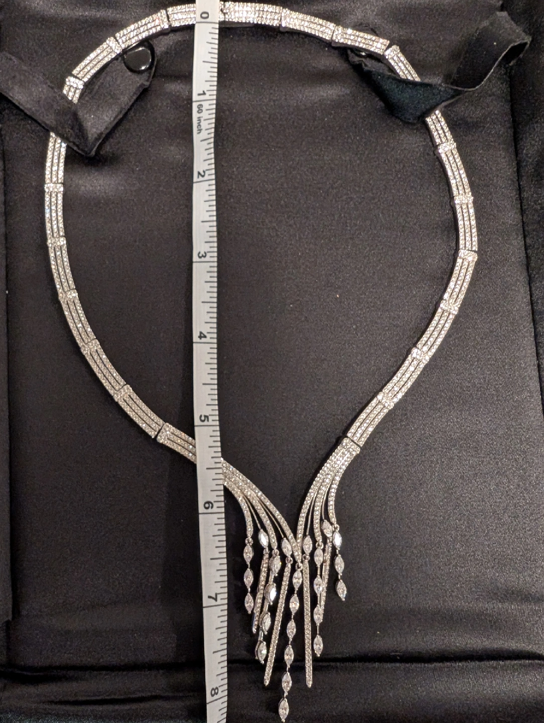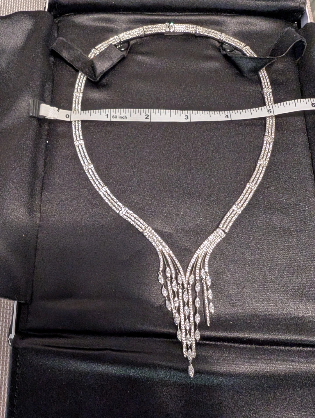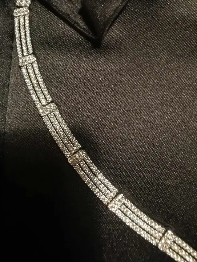 Selling a luxurious silver-tone necklace for special occasions, weddings, and formal events. It's in excellent condition. The necklace measures approximately 5 inches wide and 8 inches in length. Location: • Downtown Toronto - near Eaton Centre - Yonge & Dundas Time: • Weekdays: 3-6 pm