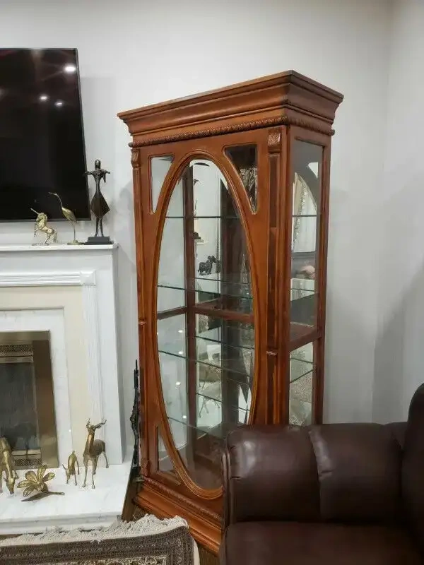 Show allElegant Wooden Curio Cabinet with Oval Glass Display