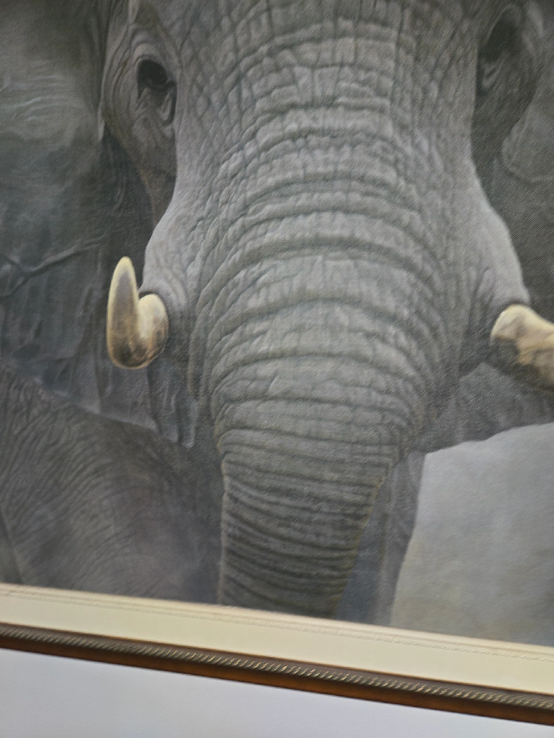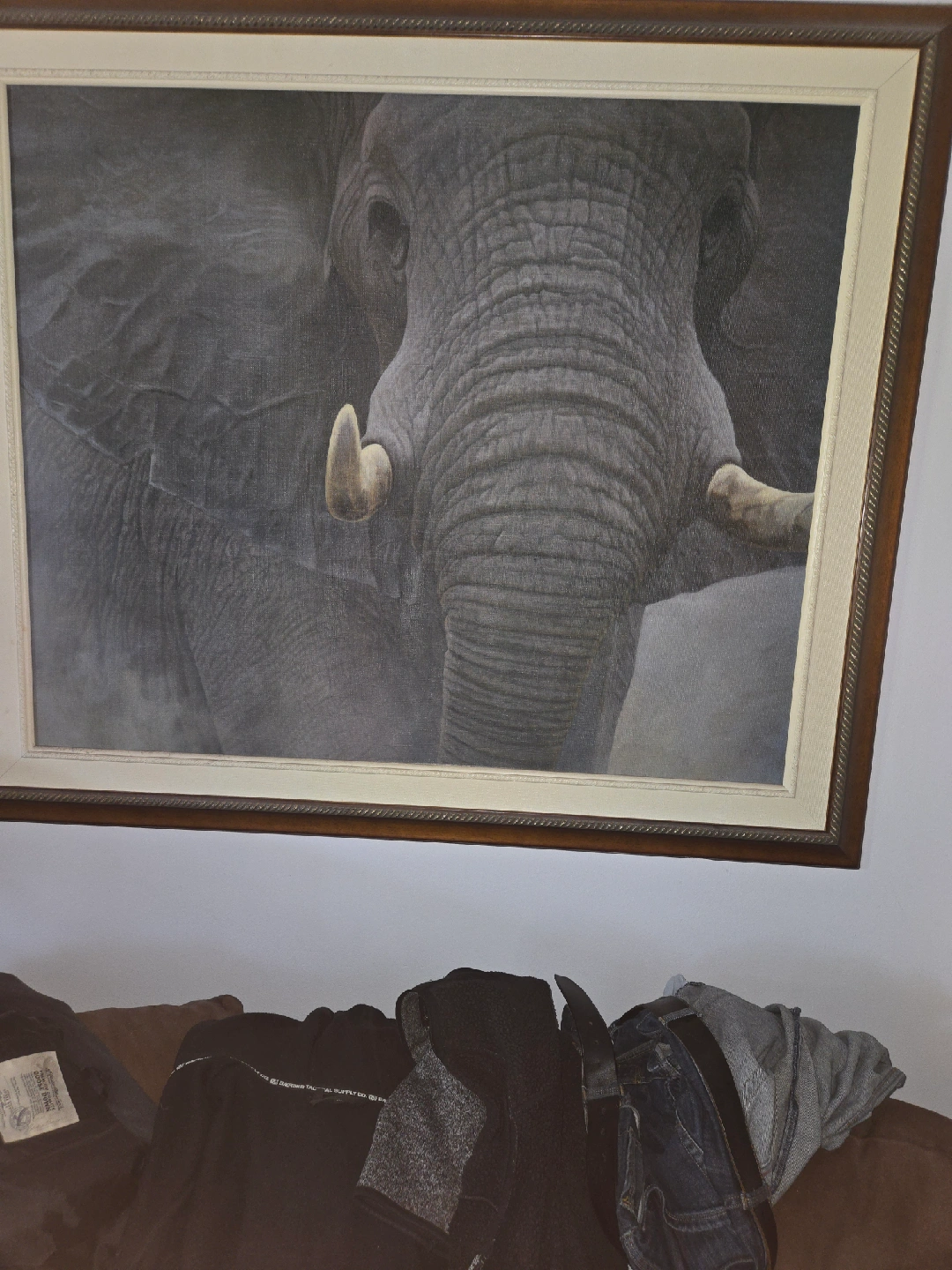 it's a beautiful picture with a hard dark wood fram. must be picked up