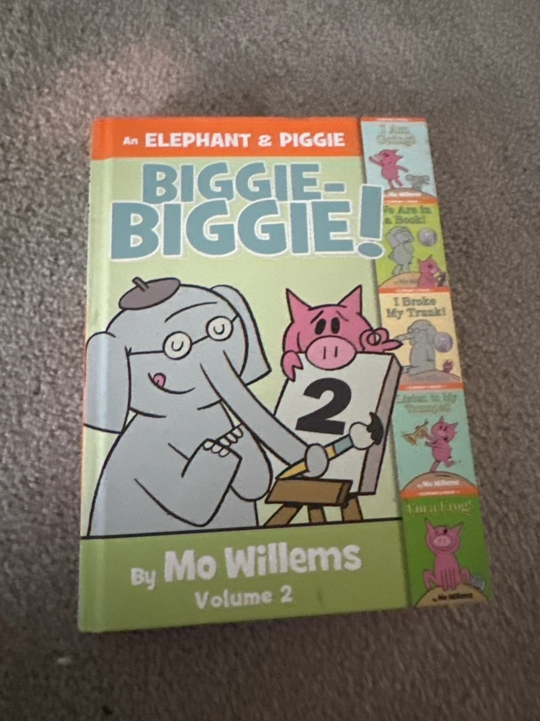 Selling the Elephant & Piggie book, Biggie-Biggie! by Mo Willems. It's Volume 2 in the series. A fun read for kids!