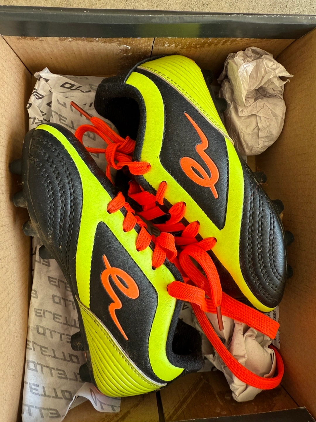 Selling a pair of Eletto soccer cleats. They're in excellent condition. They come in the original box.